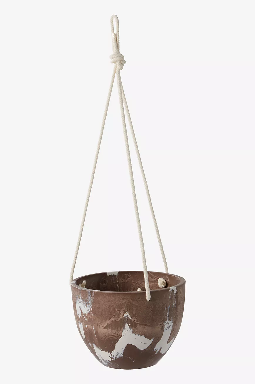 Ampelpotte i fin avrundet modell i et svært lett og robust materiale som fungerer både ute og inne. BIRK passer fint i japandi-stilen, en herlig blanding av japansk og skandinavisk form. Potten har et uregelmessig mønster som er unikt på hver ampel, ingen er den andre lik. Bomullssnorer for oppheng. Ampelen er værbestandig og tåler frost, den blir ikke bleket av sollys og er dessuten gjenvinnbar. MARK er et lett, mer bærekraftig og mer miljøvennlig produkt.