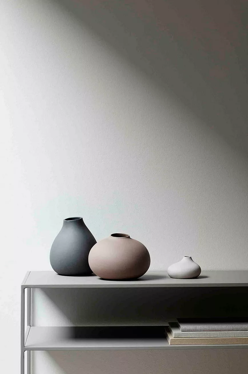 NONA sett med 3 vaser i ubehandlet porselen fra Blomus. De vakre vasene er produserte i resistent porselen som er grov og uten glasur. Små forskjeller i form, farge og synlige linjer gjør hver NONA-vase unik.