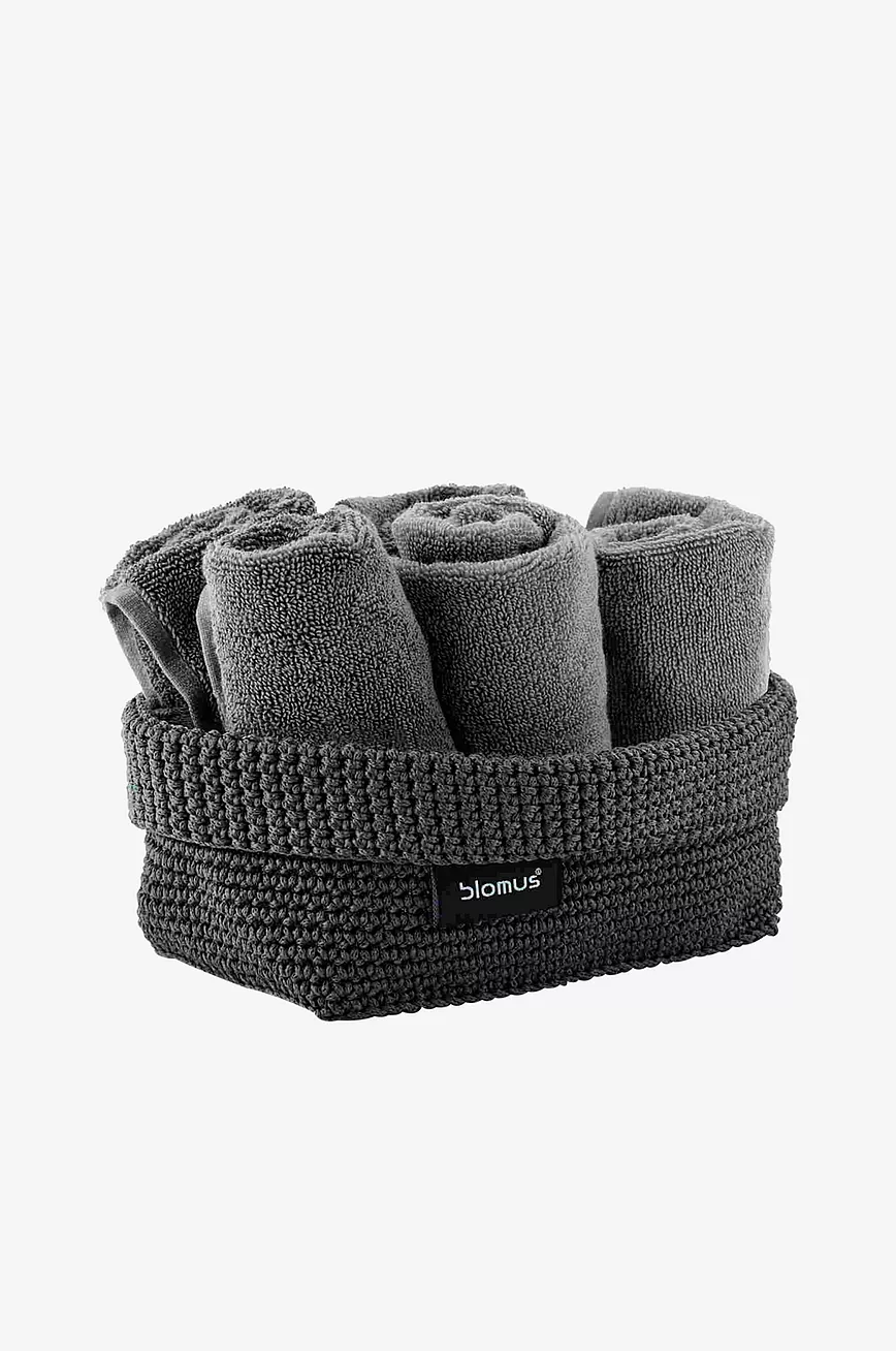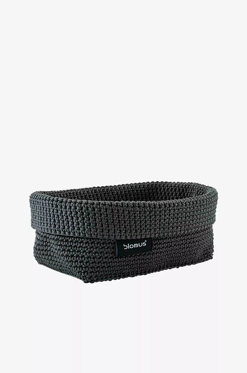Vakker kurv i heklet tekstil. Praktisk oppbevaring på baderommet for alle småting som sminke, bomull eller q-tips. Kan også brukes som brødkurv eller oppbevaring på kontor eller barnerom.