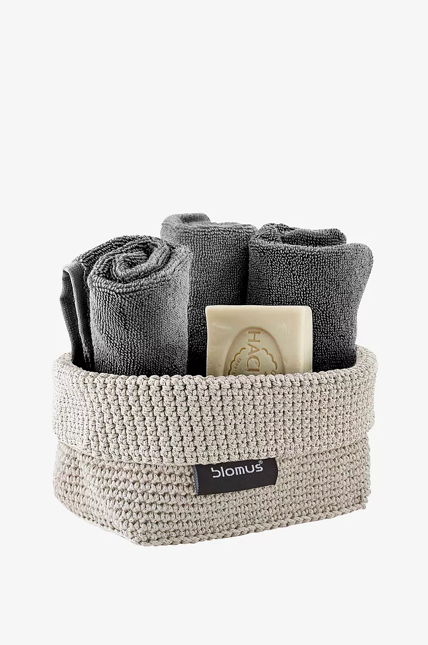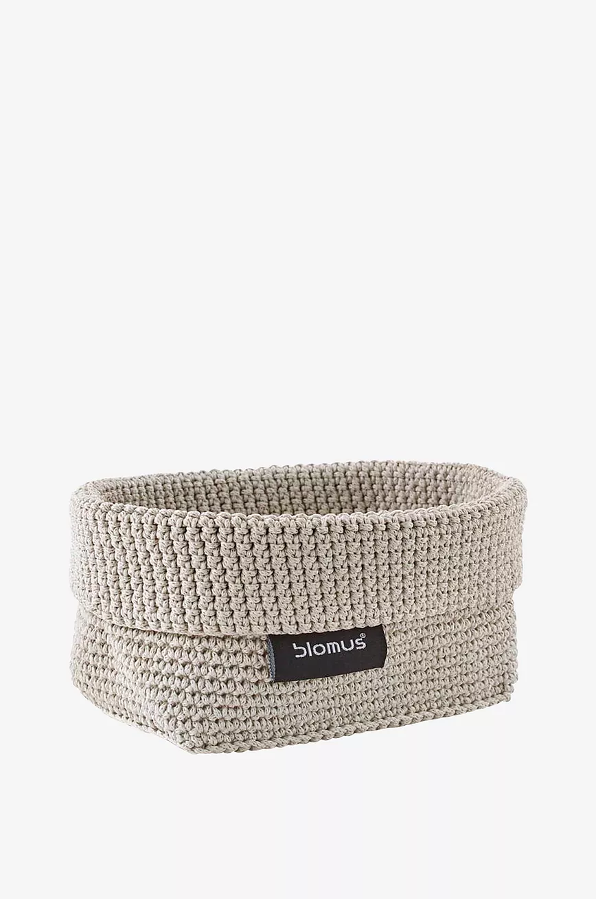 Vakker kurv i heklet tekstil. Praktisk oppbevaring på baderommet for alle småting som sminke, bomull eller q-tips. Kan også brukes som brødkurv eller oppbevaring på kontor eller barnerom.