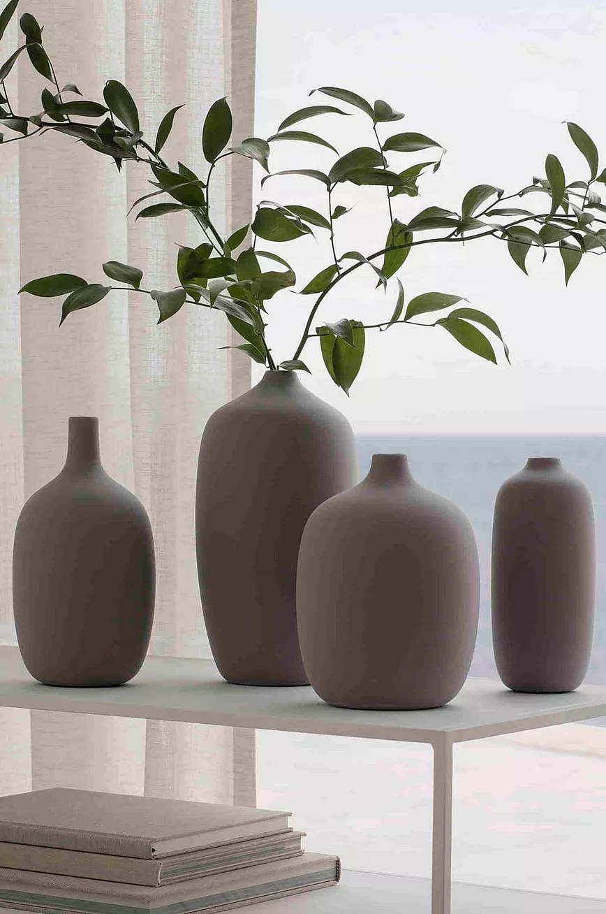 Vasene er produserte i glasert keramikk som fortsatt har en viss ruhet. Det gir hver vase et unik utseende.