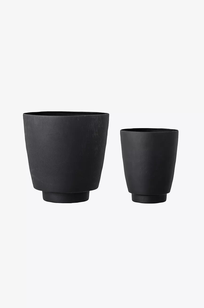 Moderne blomsterpotte av metall i enkel, nordisk design. Helt perfekt for plantene dine. Selges i 2-pakning. Mål diameter 21, høyde 25 cm. Diameter 30,5, høyde 31 cm.