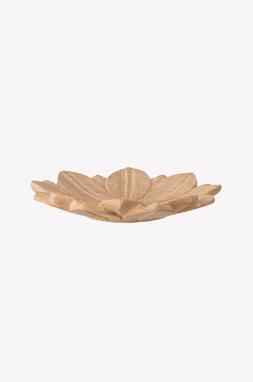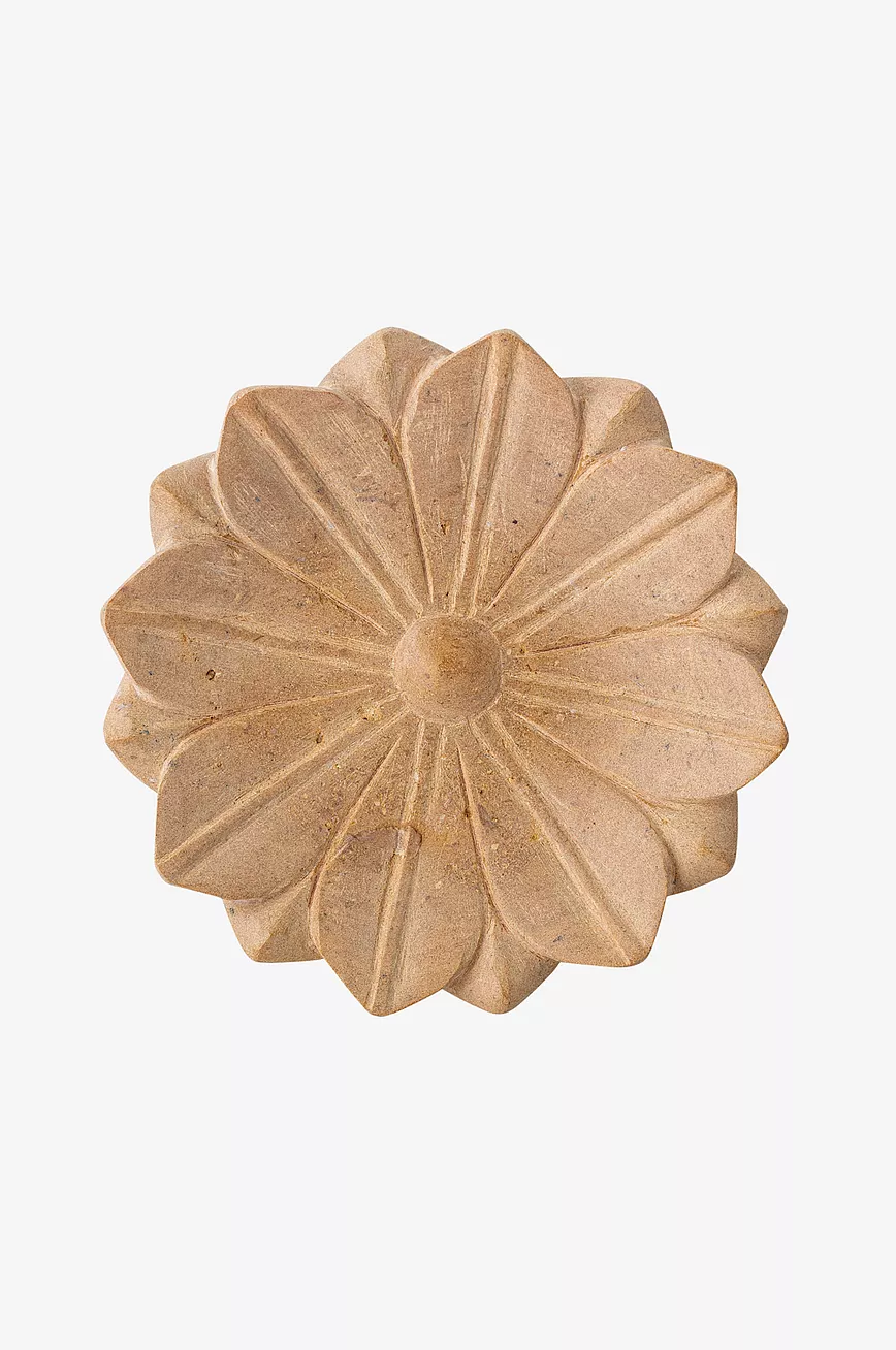 Vakkert brett av marmor i varm sandfarge. Brettets design i form av en blomst gjør den til en dekor i seg selv – som bringer en del av naturen inn i hjemmet på en elegant måte. Brettet er til og med egnet for matvarer slik du kan bruke det for en annerledes presentasjon av mat eller snacks ved spisebordet. Eller du kan bruke det som fin pynt i vinduskarmen eller på kommoden.