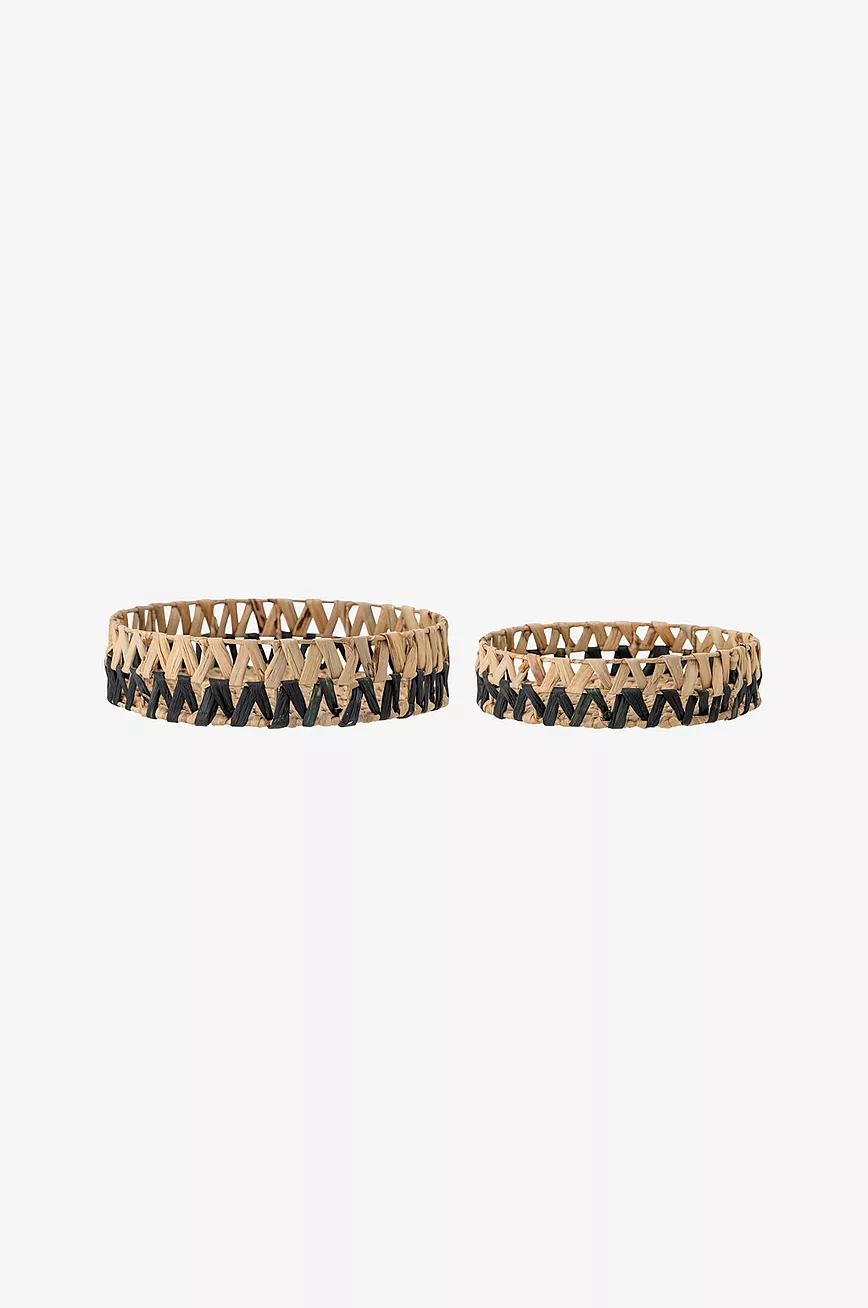 Tinne brett fra Creative Collection er et sett med to håndlagde brett, produsert av naturmateriale med svart farge nederst. Brettene har ulik størrelse og er perfekte som dekor med dine vakreste gjenstander. Selges i 2-pakning. Mål diameter 34, høyde 8 cm. Diameter 41, høyde 10 cm.