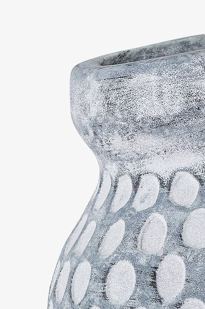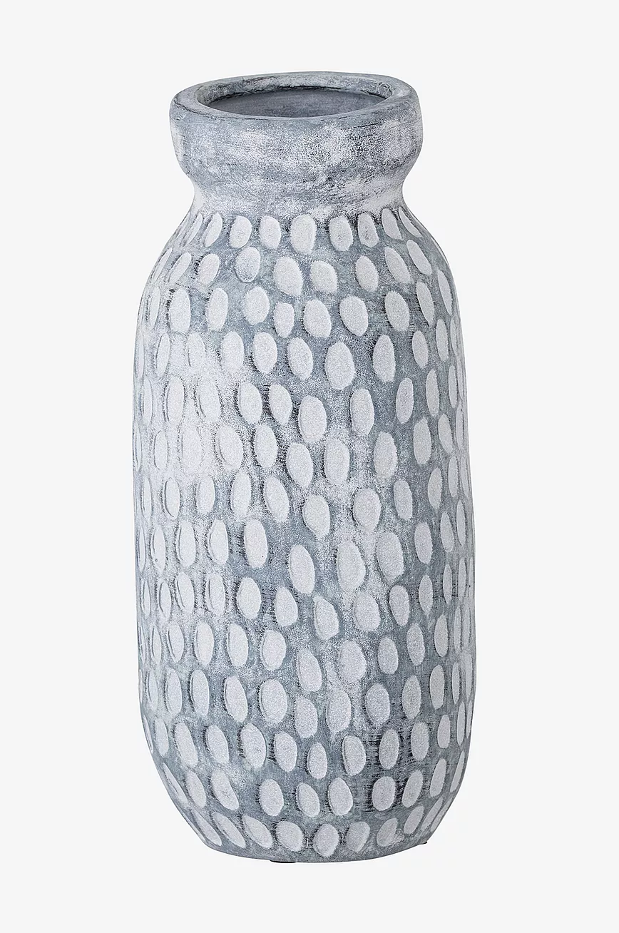 Jac dekor fra Bloomingville er produsert av keramikk i vakker design. Den spesielle designen i nordisk stil har et prikkete mønster og glasur med en fantastisk, skiftende effekt! Vasen i håndverksmessig stil er glasert inni, og er klar for en vakker bukett. Produktene varierer og er unike på grunn av den reaktive glasuren.