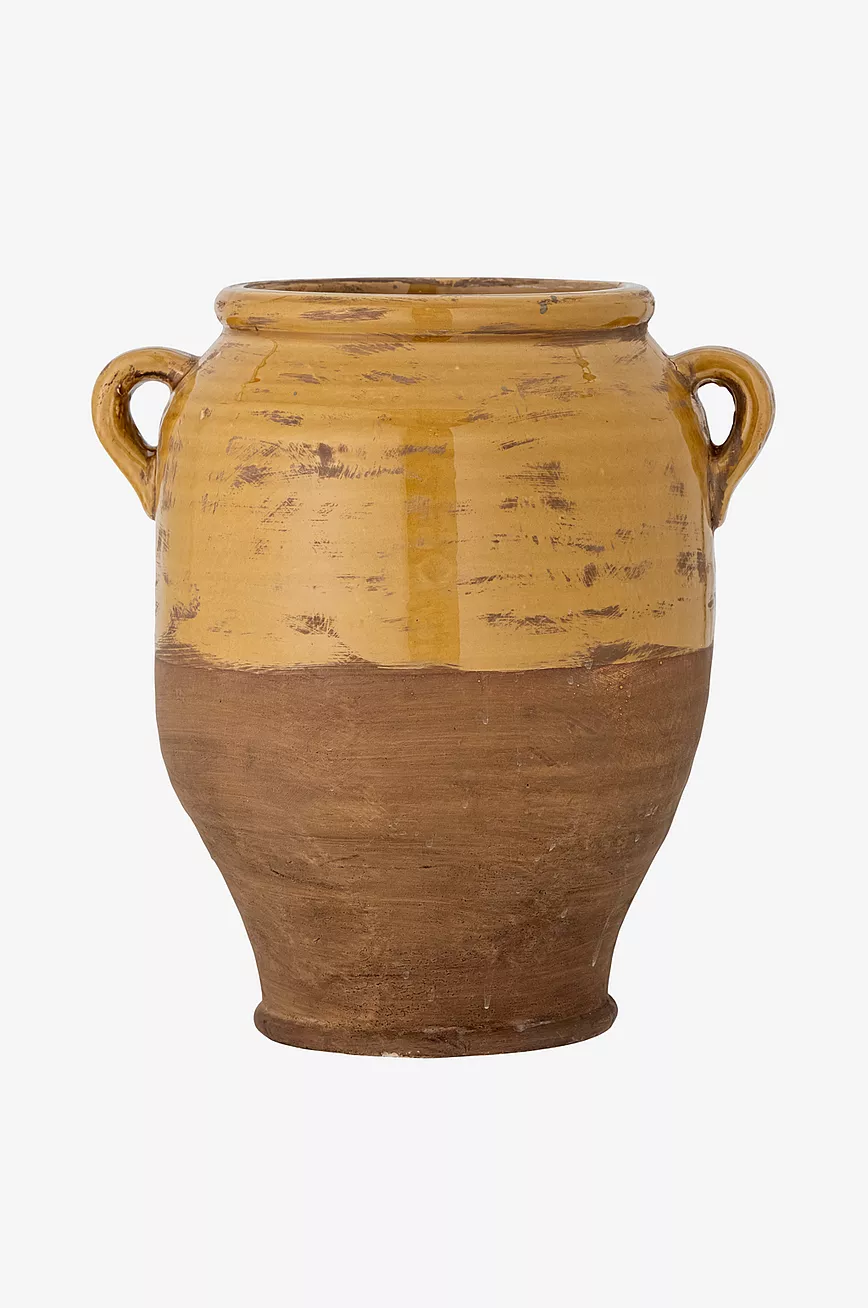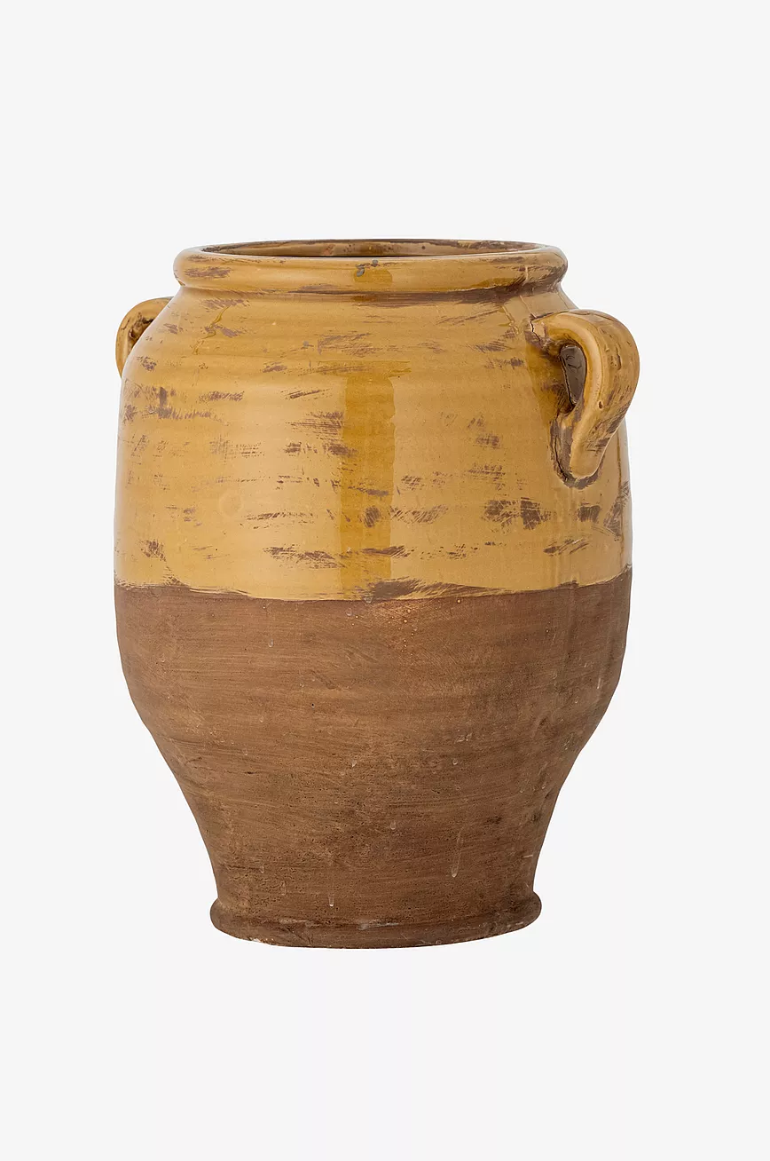 Tao dekorkrukke fra Bloomingville er av terrakotta med gul glasur. Blomsterpotten har to håndtak øverst som gir den en vakker, antikk stil. Den gir rommet en personlig følelse og koselig stemning. På grunn av glasuren kan fargene variere.