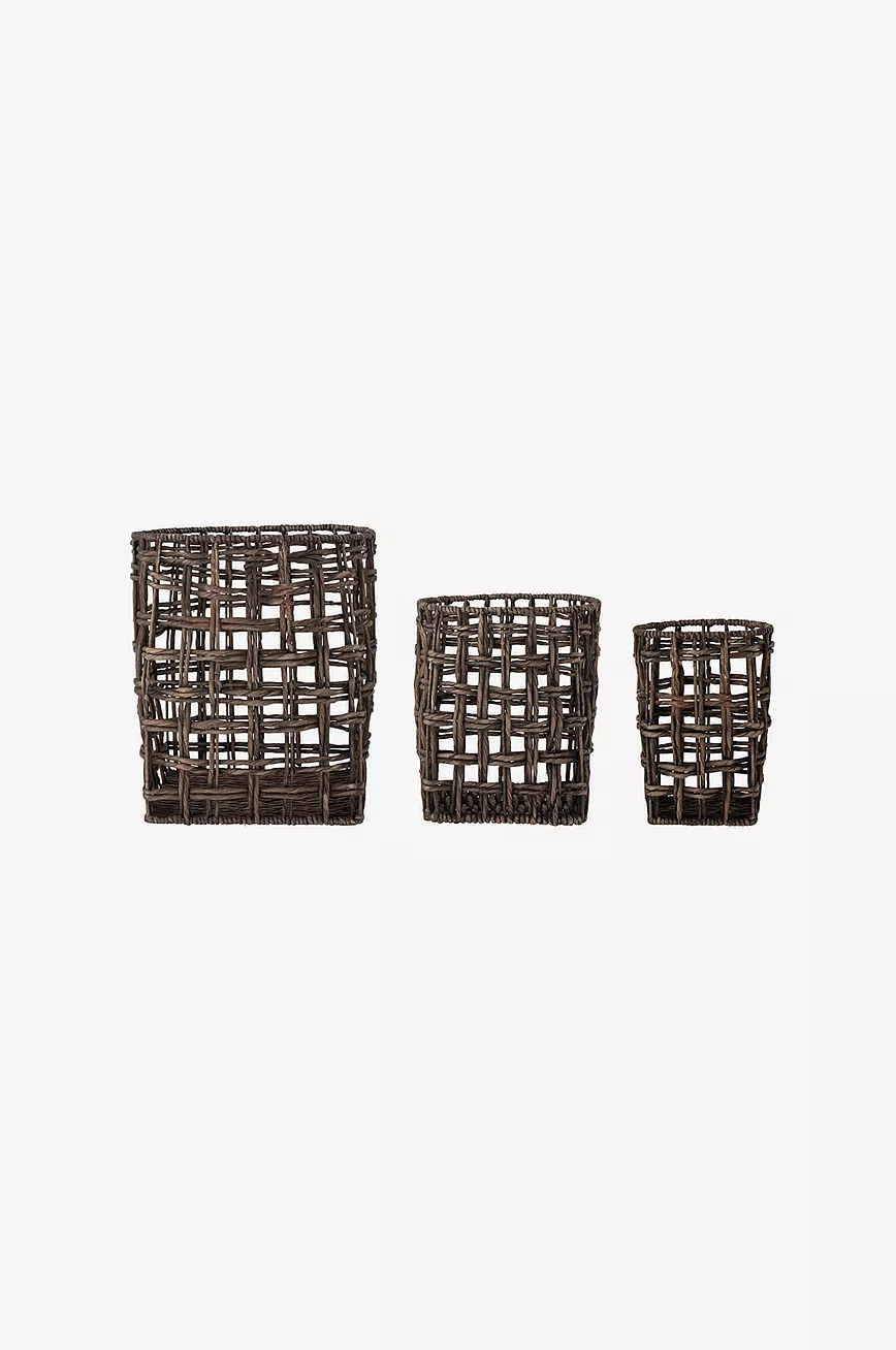 Fune kurv fra Creative Collection er et sett med tre kurver av vakkert flettet vannhyasint i mørk brun farge. Kurvenes ulike størrelser gjør at de passer til oppbevaring av mange slags ting. Den transparente designen gjør de ekstra vakre til oppbevaring av magasiner og tekstiler i stua. Mål: diameter 22, 30 og 38 cm. Høyde 30, 33 og 43 cm. 3-pk