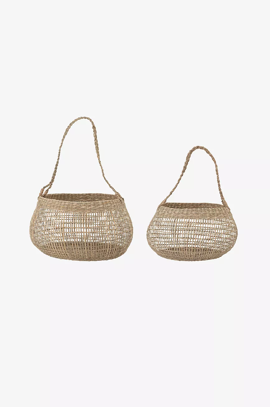 Gianni kurv fra Bloomingville er et fint sett med to kurver med bredt håndtak. Av sjøgress i naturfarge. Naturmaterialet gir en følelse av varme, og siden settet har to ulike størrelser, er kurvene perfekte for å oppbevare ulike ting inkludert planter. Selges i 2-pakning. Diameter 33, høyde 20 cm. Diameter 40, høyde 22,5 cm.