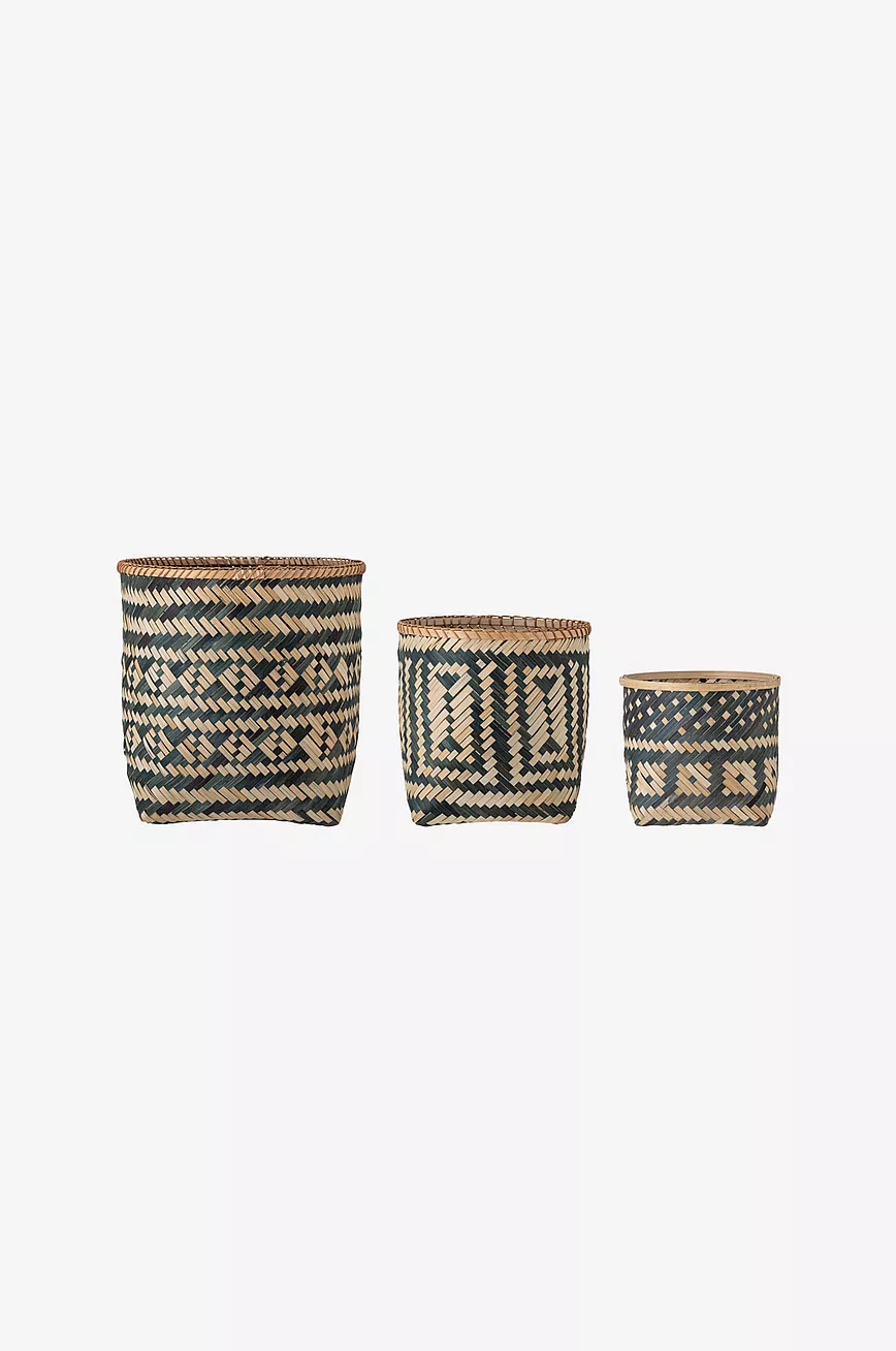 Jomo kurv fra Bloomingville er et sett med tre fantastiske kurver i naturfarge med ulike størrelser. Kurvene av bambus har ulike etniske mønstre i svart farge. Kurvene blir et fint innslag i interiøret, og er perfekte til å oppbevare småting i, i stua, soverommet eller badet.