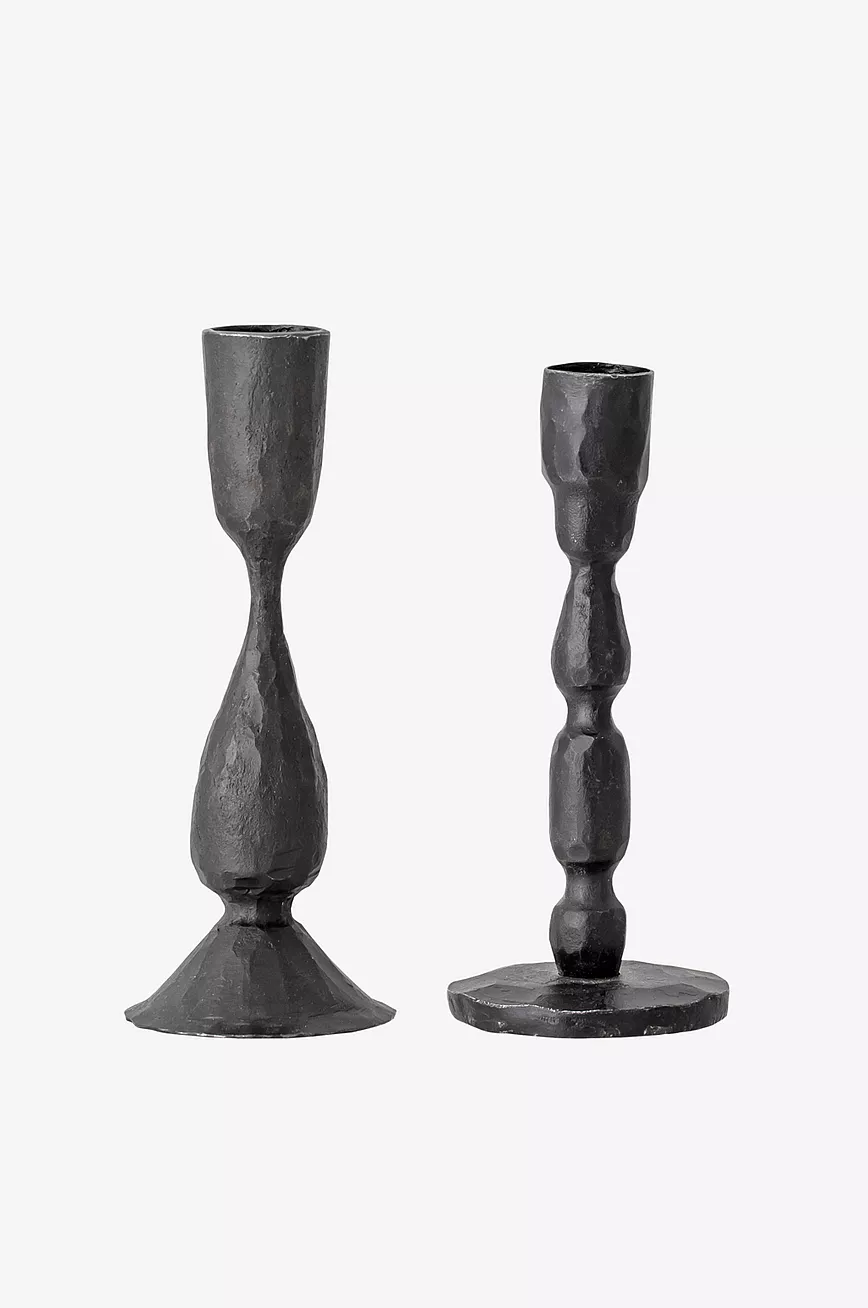 Lysestaker av svart metall med hamret overflate. Helt perfekt under høstens og vinterens lange netter. Selges i 2-pakning. Diameter 6,5, høyde 15 cm. Diameter 6, høyde 16 cm.