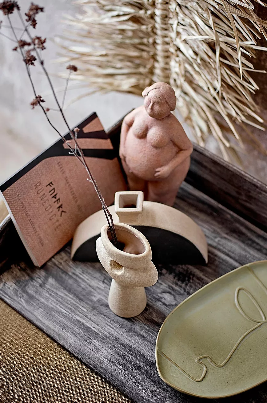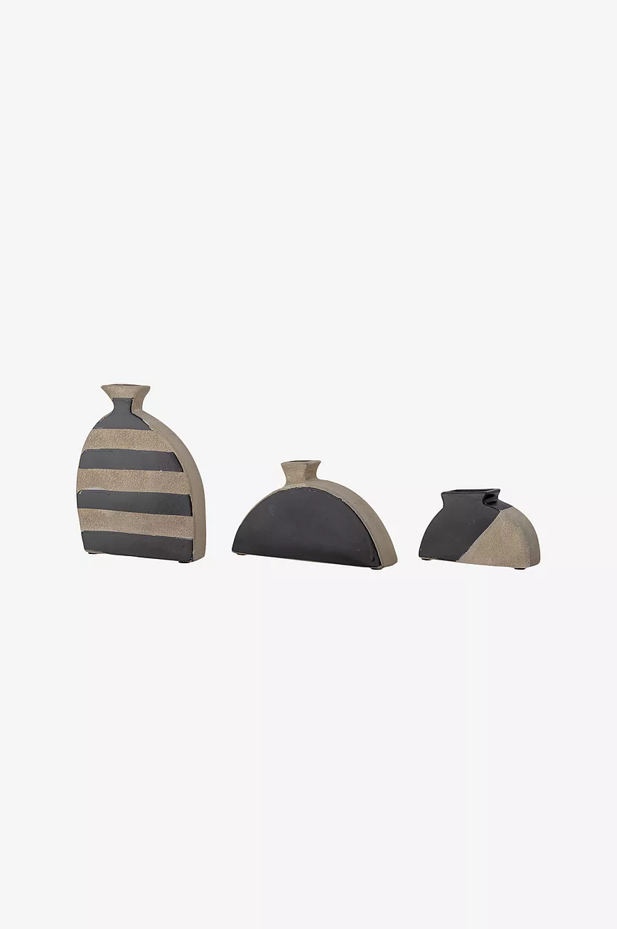 Grafiske dekorvaser av terrakotta, selges i 3-pakning. Hvert produkt er unikt og malt for hånd. Selges i 3-pk. Mål: 4,5×16, høyde 9,5 cm. 4,5×21, høyde 13 cm. 4,5×17, høyde 23 cm.