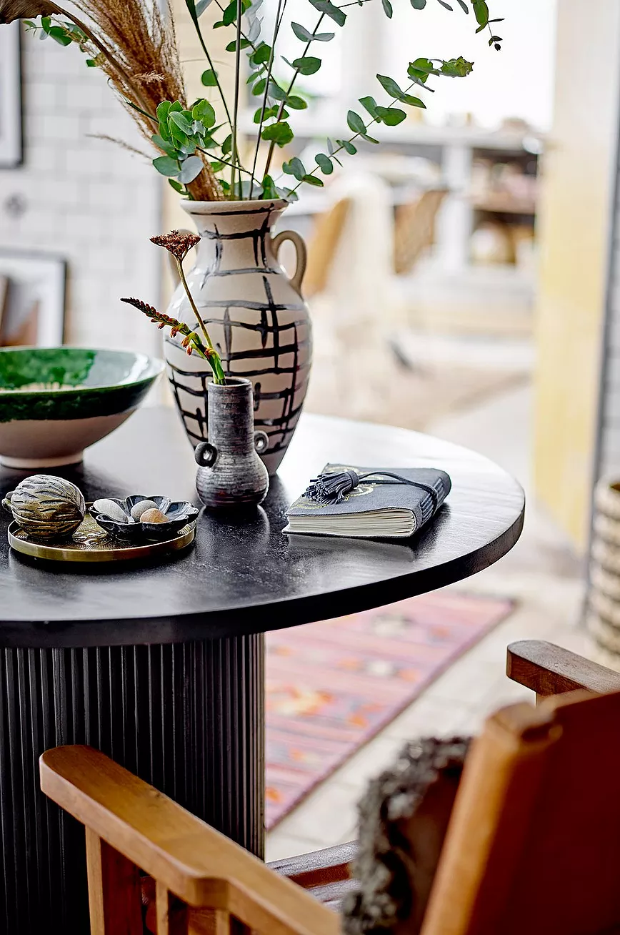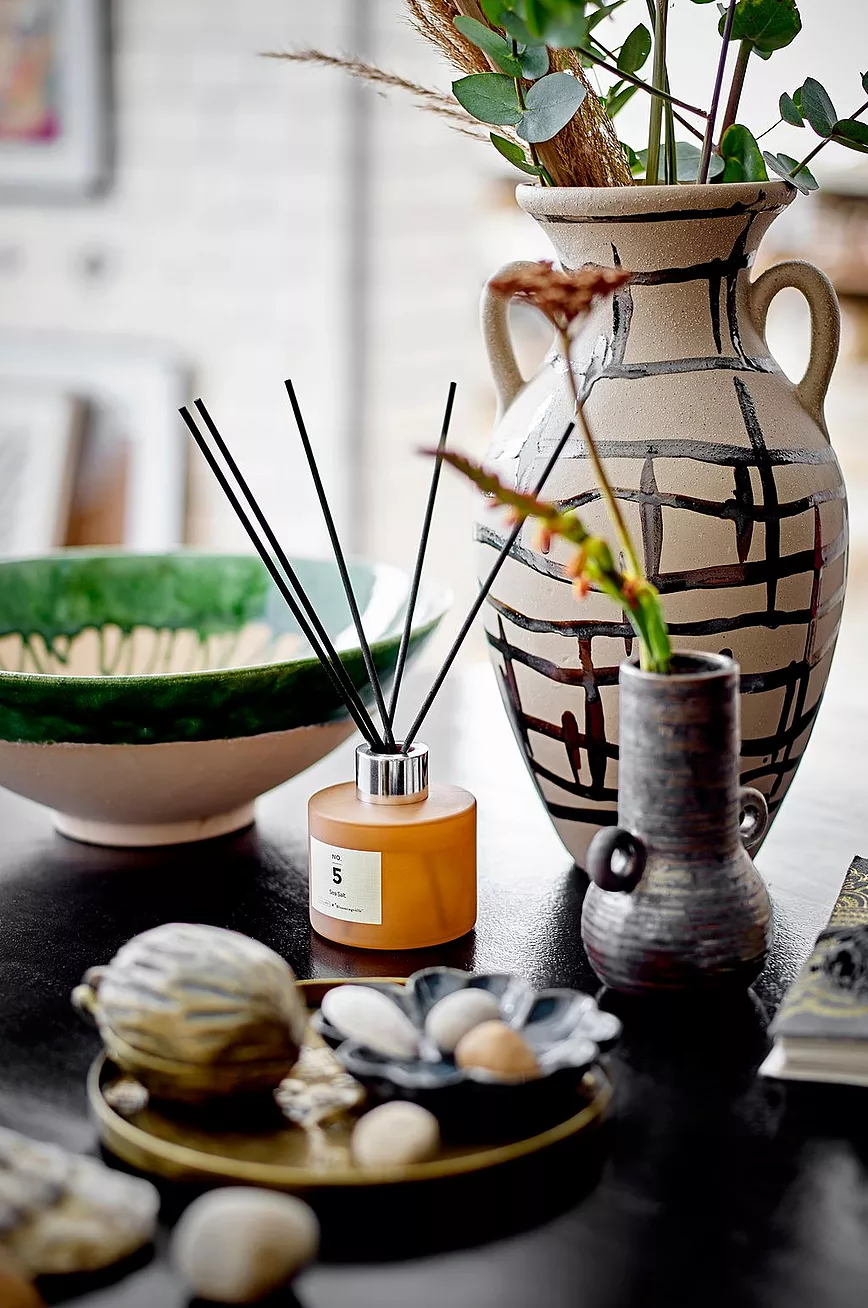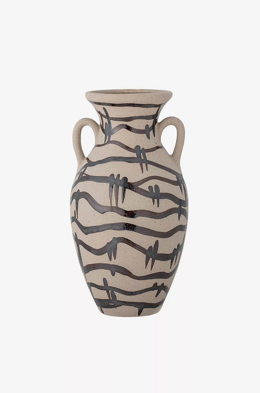 Ohana vase fra Bloomingville er produsert av steintøy med et abstrakt, håndmalt mønster i blå nyanser. Style vasen med en vakker bukett. Hvert produkt er unikt siden de er dekorerte for hånd.