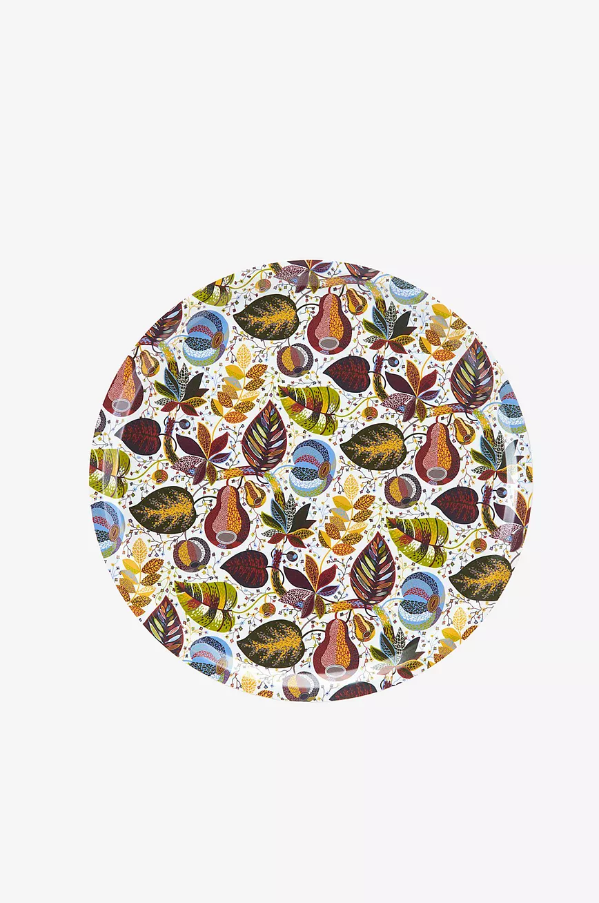 Rundt laminatbrett som er produsert i Sverige. Brettet næringsmiddelgodkjent.