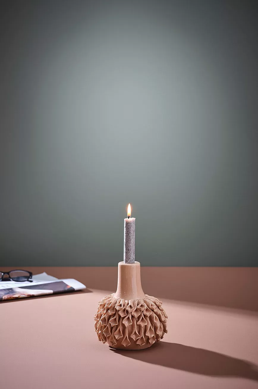 Lysestake av keramikk. BUTCH har herlig retrofølelse i formen og vakker glans i glasuren. Lysestaken er håndlaget, noe som gjør hvert eksemplar unikt. Lys medfølger ikke.
