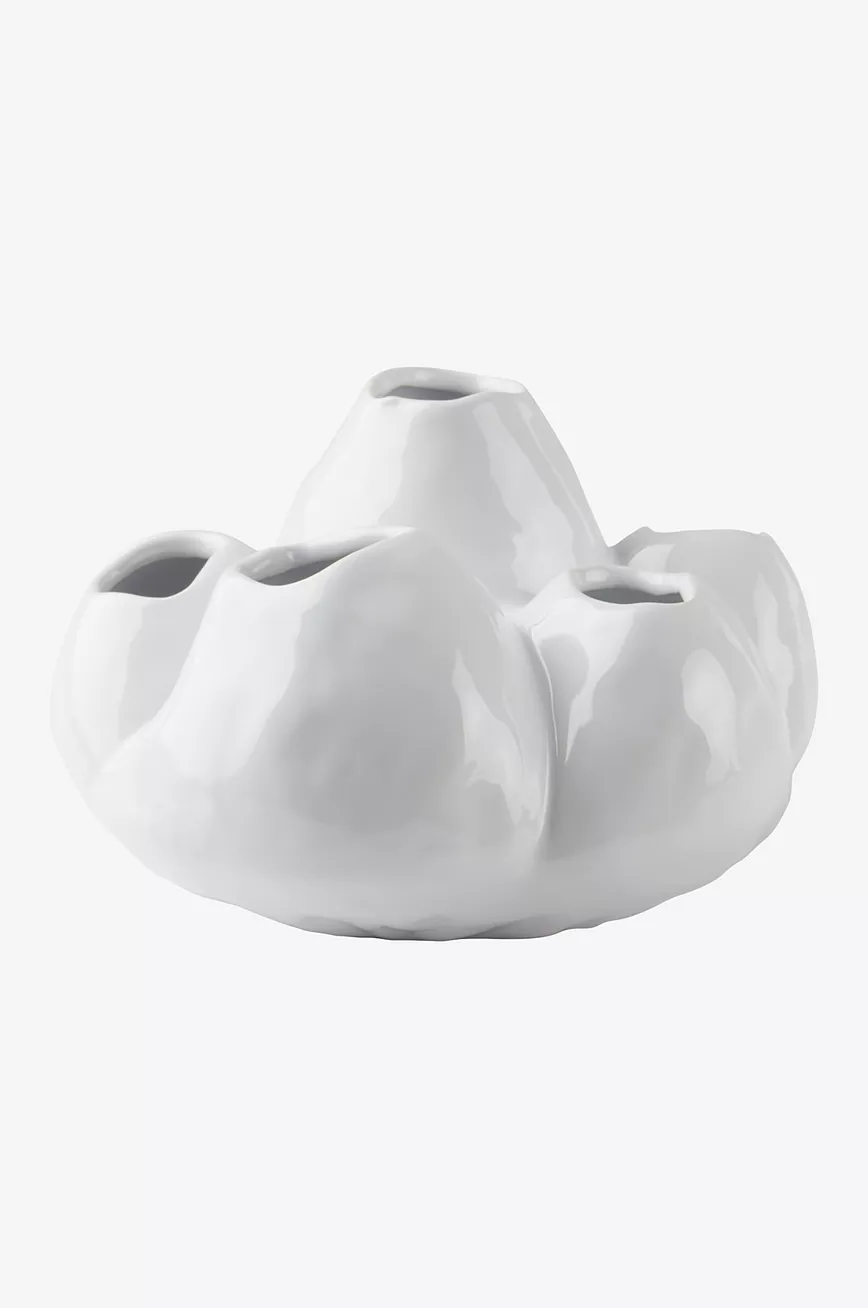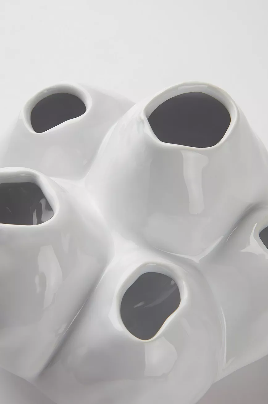 Vase av steintøy i spennende fasong med vakker, blank lasur. Den fine formen gjør det mulig å skape kreative arrangementer. Innsiden er også glasert. Det fine håndverket gjør hver vase unik. Steintøy kan slippe gjennom fukt.