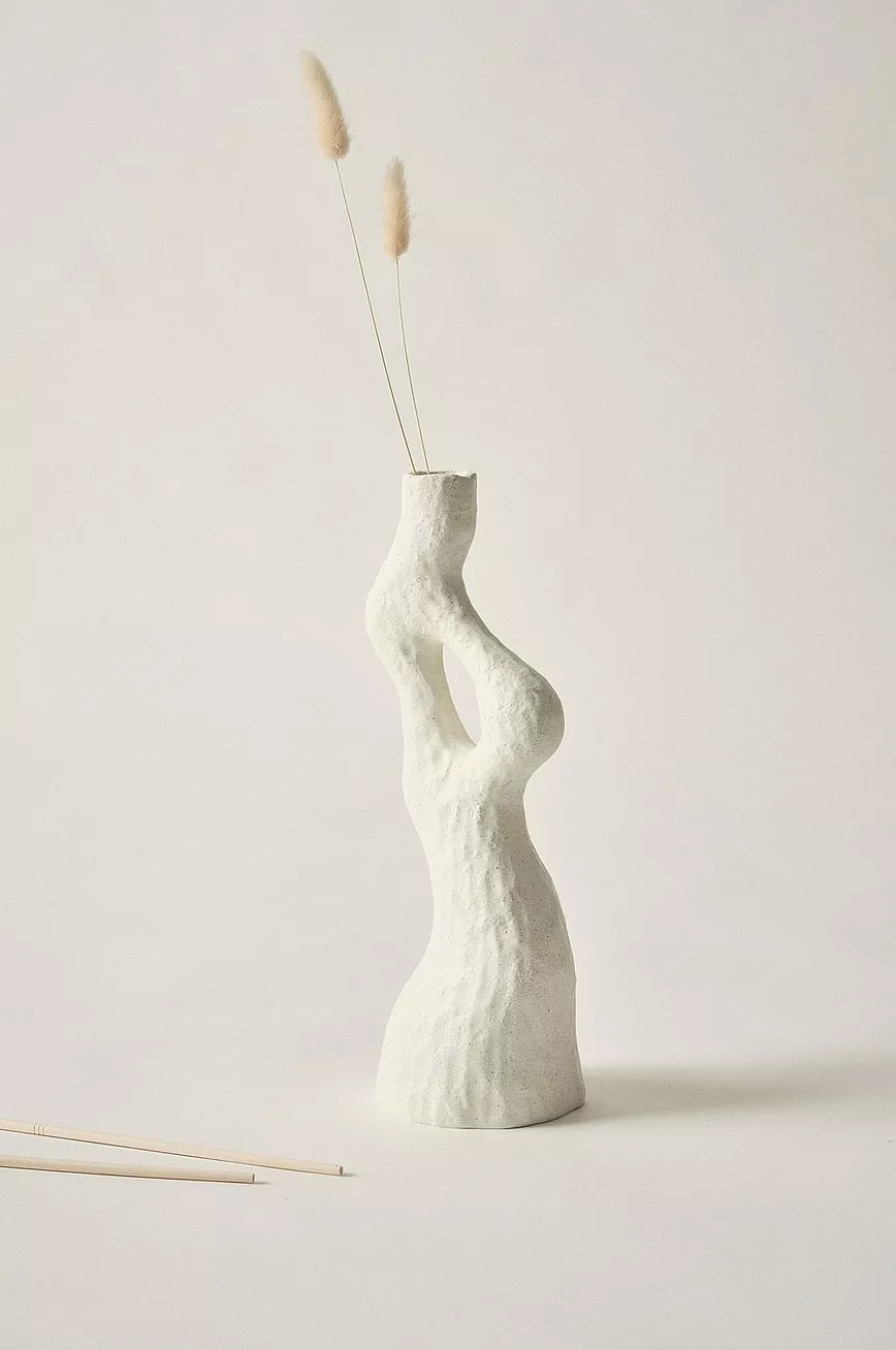 Dekorvase av polyresin i en mykt smidig og bølgende form som får deg til å tenke på naturen. Vasen er stor og praktfull, vakker med en kvist i eller bare som den er, med en spennende form.