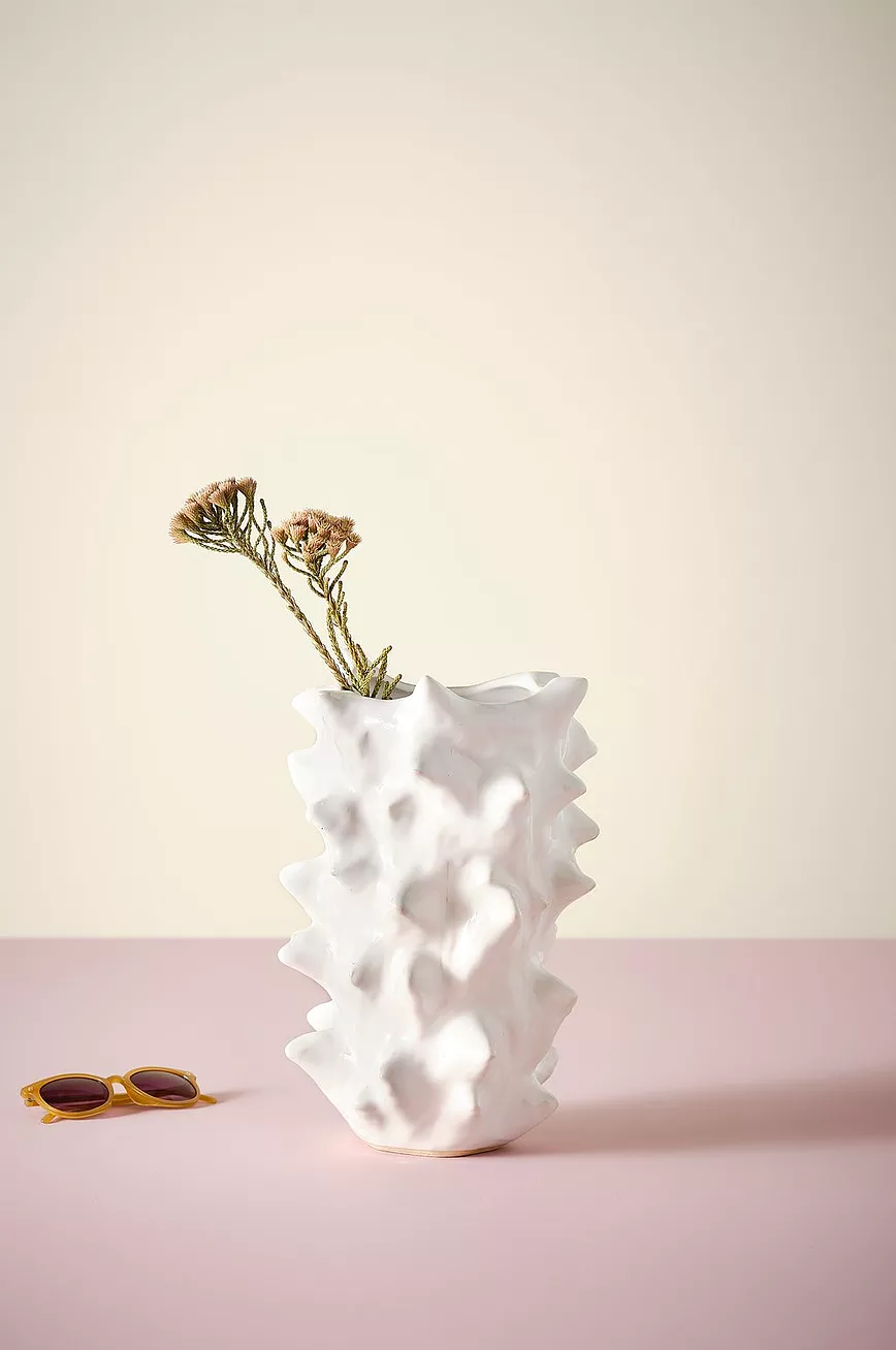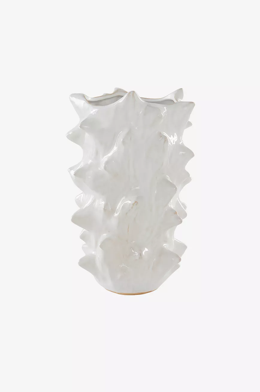 Håndlaget vase av keramikk med blank glasur som er vakker sammen med grønne planter. Innsiden er også glasert. Et visst avvik kan forekomme ettersom vasen er håndlaget. Keramikk kan slippe gjennom fukt.