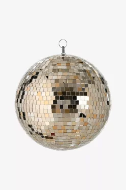 Klassisk discokule / speilball med små firkantede speil som reflekterer lyset. Feste for oppheng.