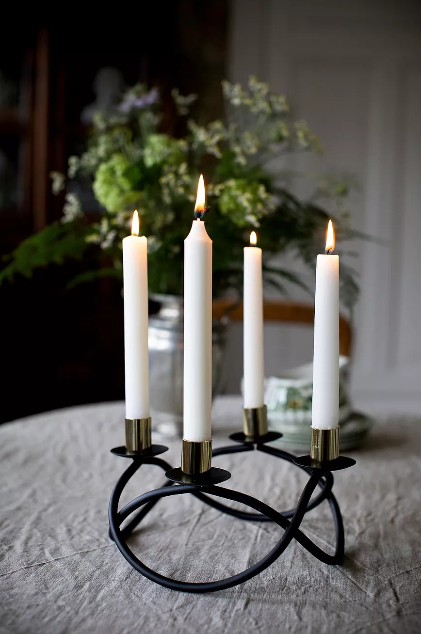 Asta lysestake, smijern, rund, 4 antikklys, diameter 23 cm