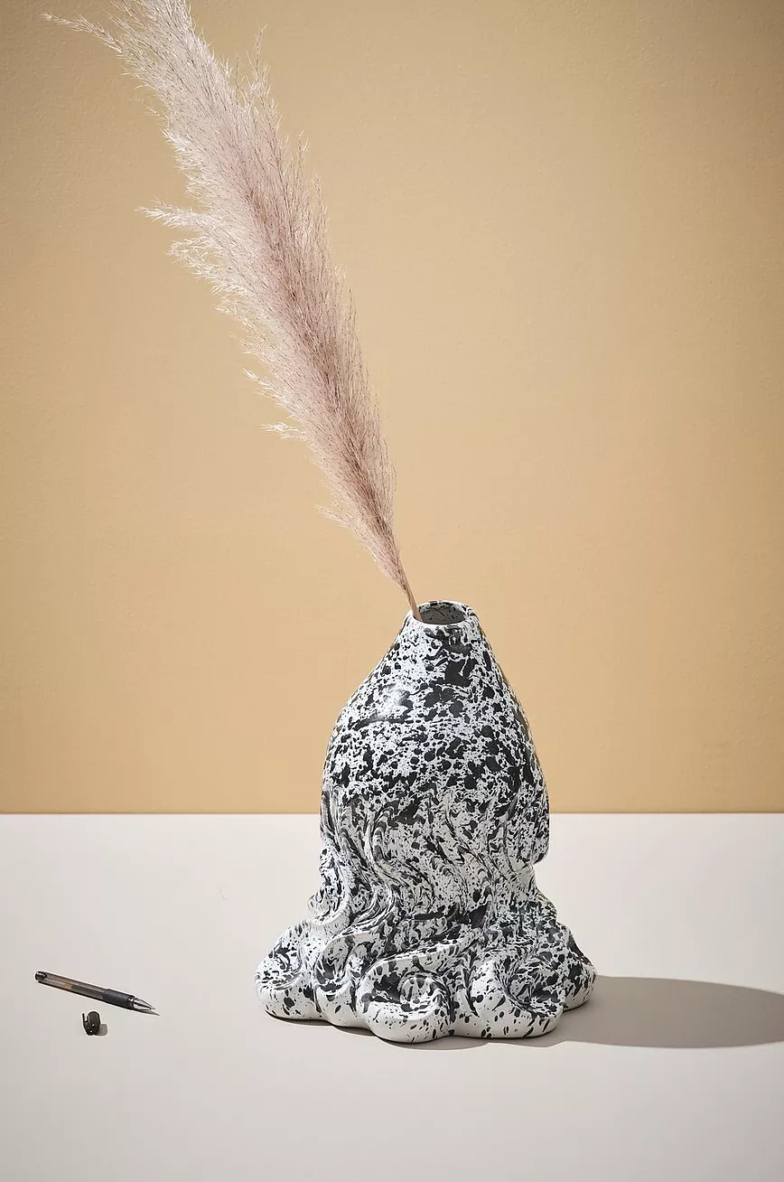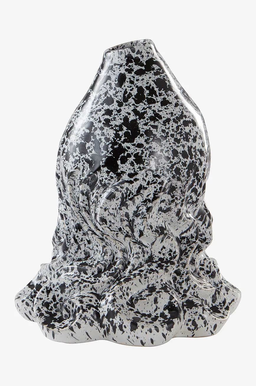 Vase av keramikk som også blir en dekorativ gjenstand der den plasseres. Vasen er håndlaget i vakker form og deretter glasert med effektfullt stenkmønster. Det fine håndverket gjør at hvert eksemplar er unikt. Husk at keramikk kan slippe gjennom fukt.
