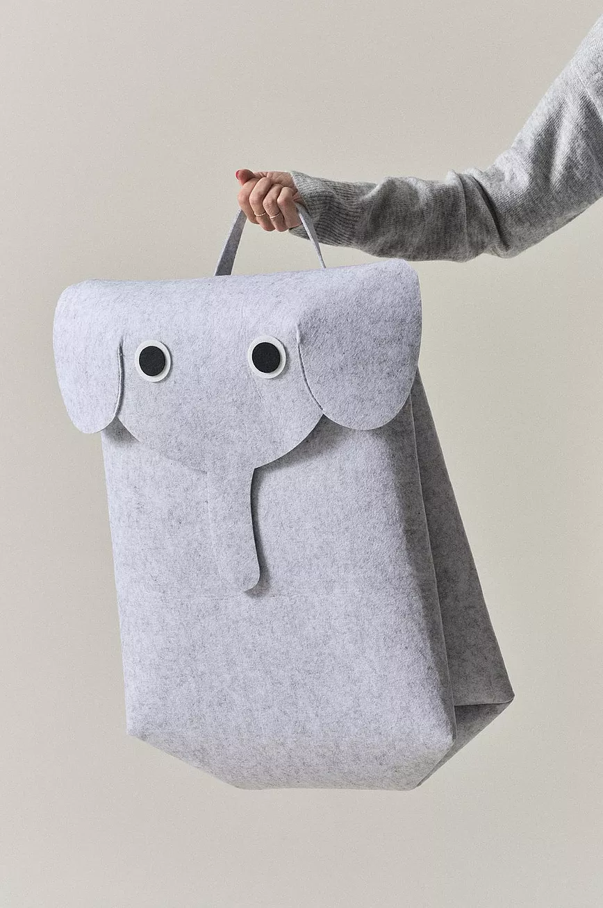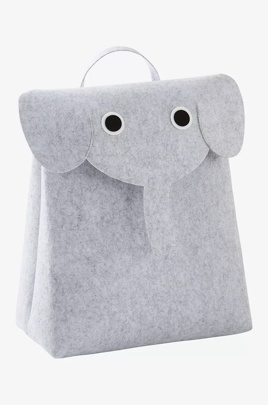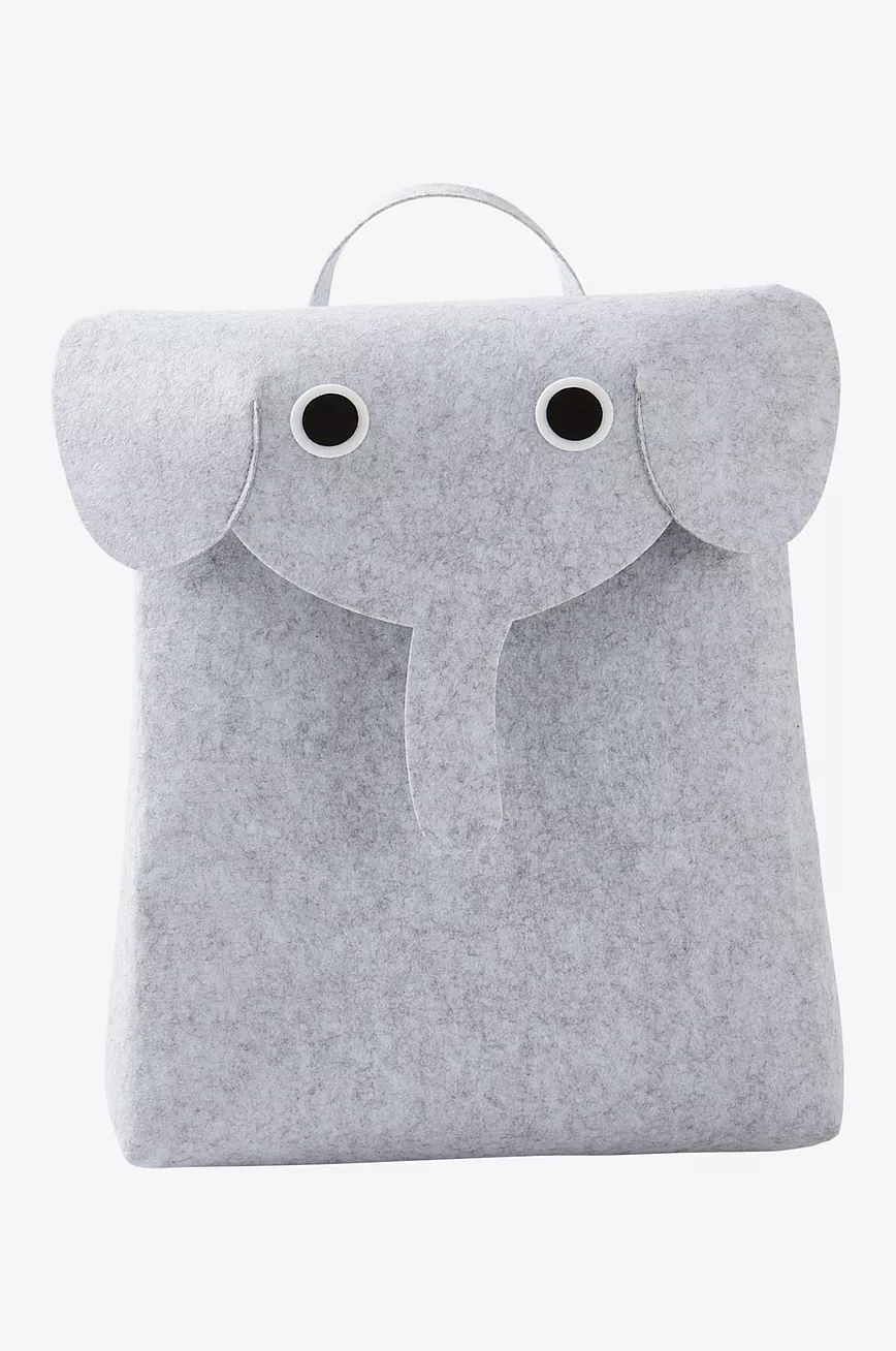 Romslig veske av tovet polyester. GRANERA passer også fint til oppbevaring, og rommer for eksempel mange kosedyr. Vesken har håndtak på toppen og stor åpning under lokket. Lokket har både øyne, snabel og ører, og vesken ser snill og blid ut.