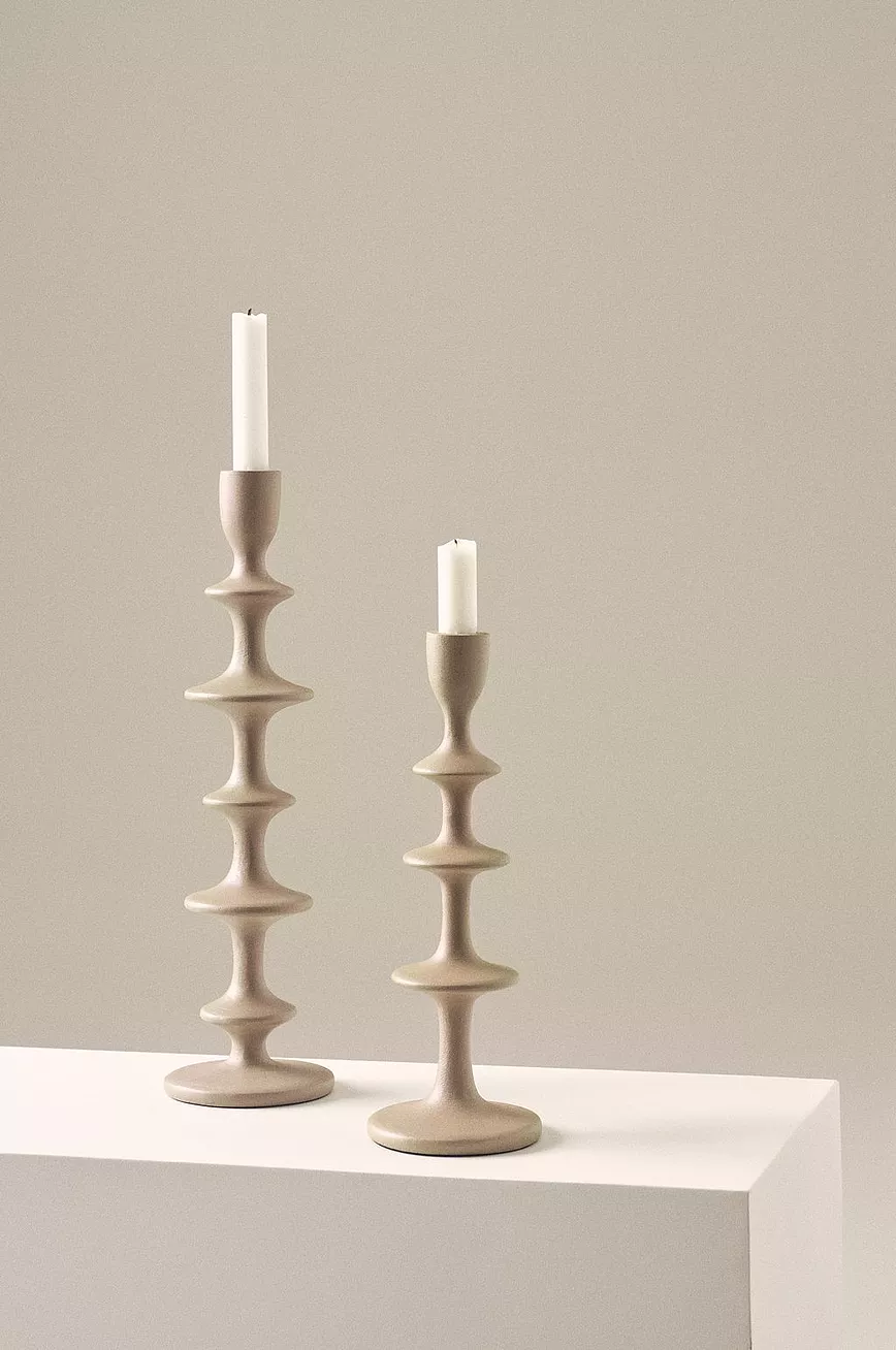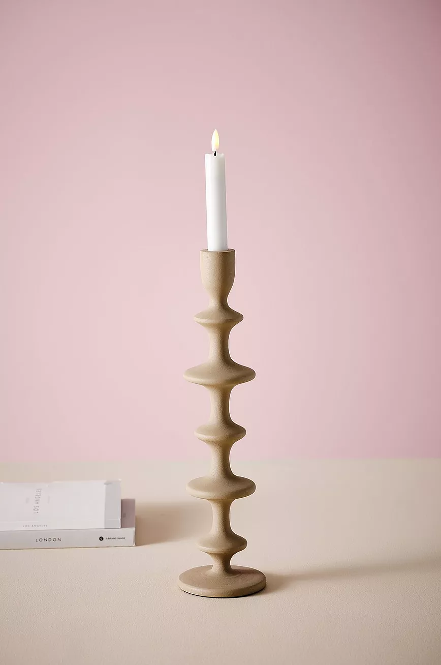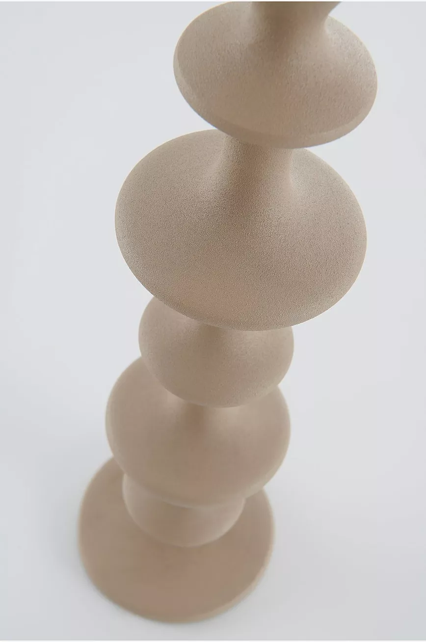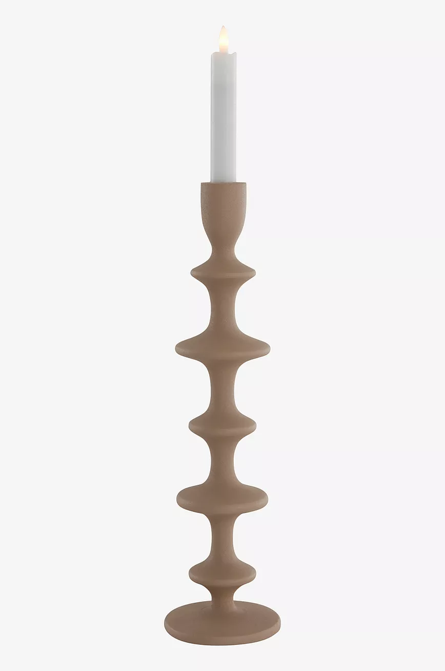 Lysestake i aluminium med struktur. En herlig lysestake i vakker form som passer like fint til hverdags og fest. Lys medfølger ikke.