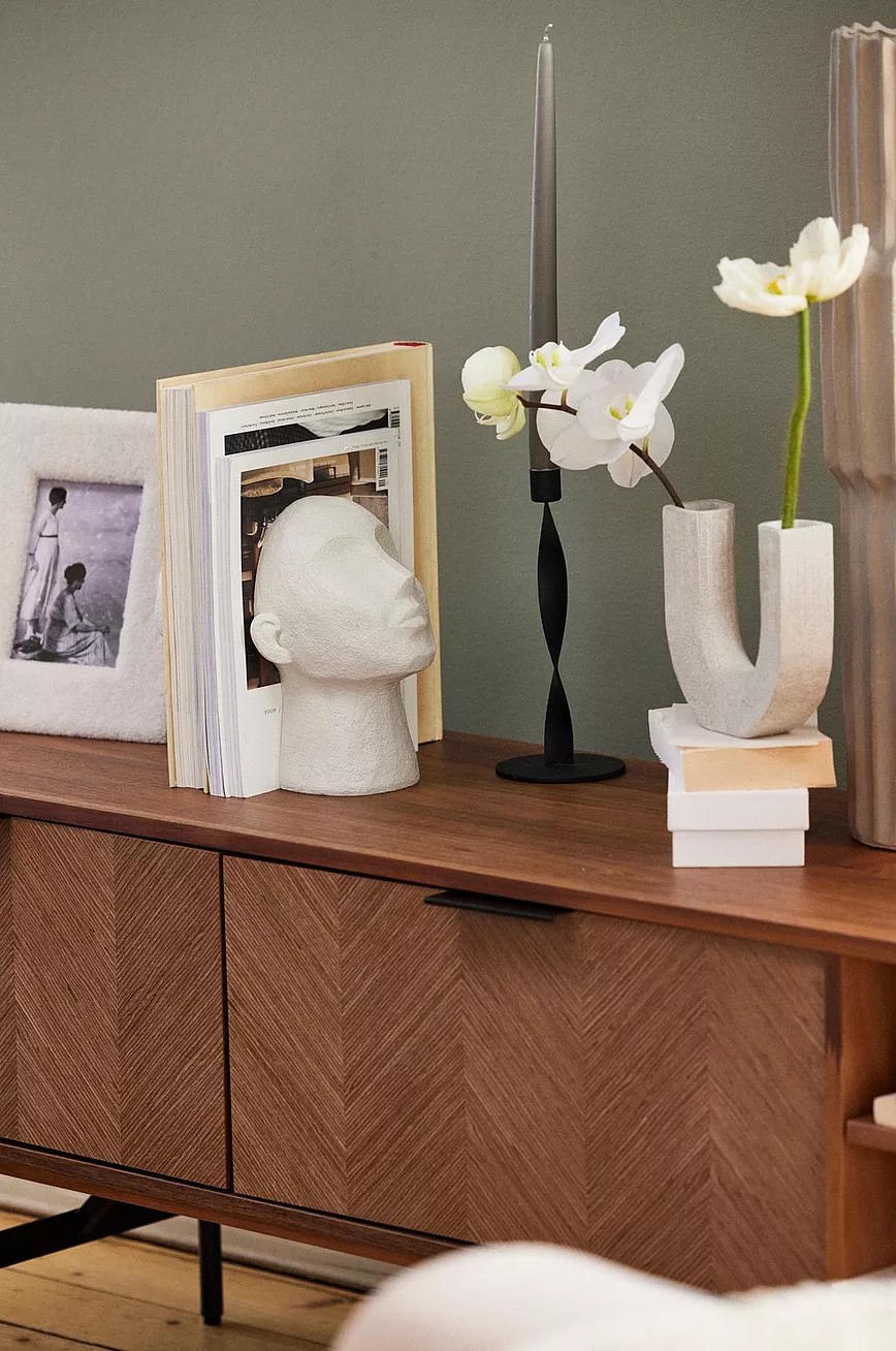 Dekorvase av polyresin. Vase med spennende form og unikt design som blir et vakkert blikkfang i hjemmet.