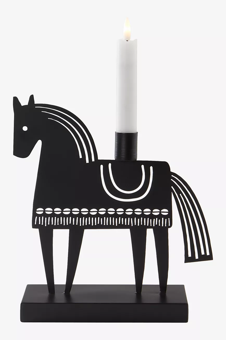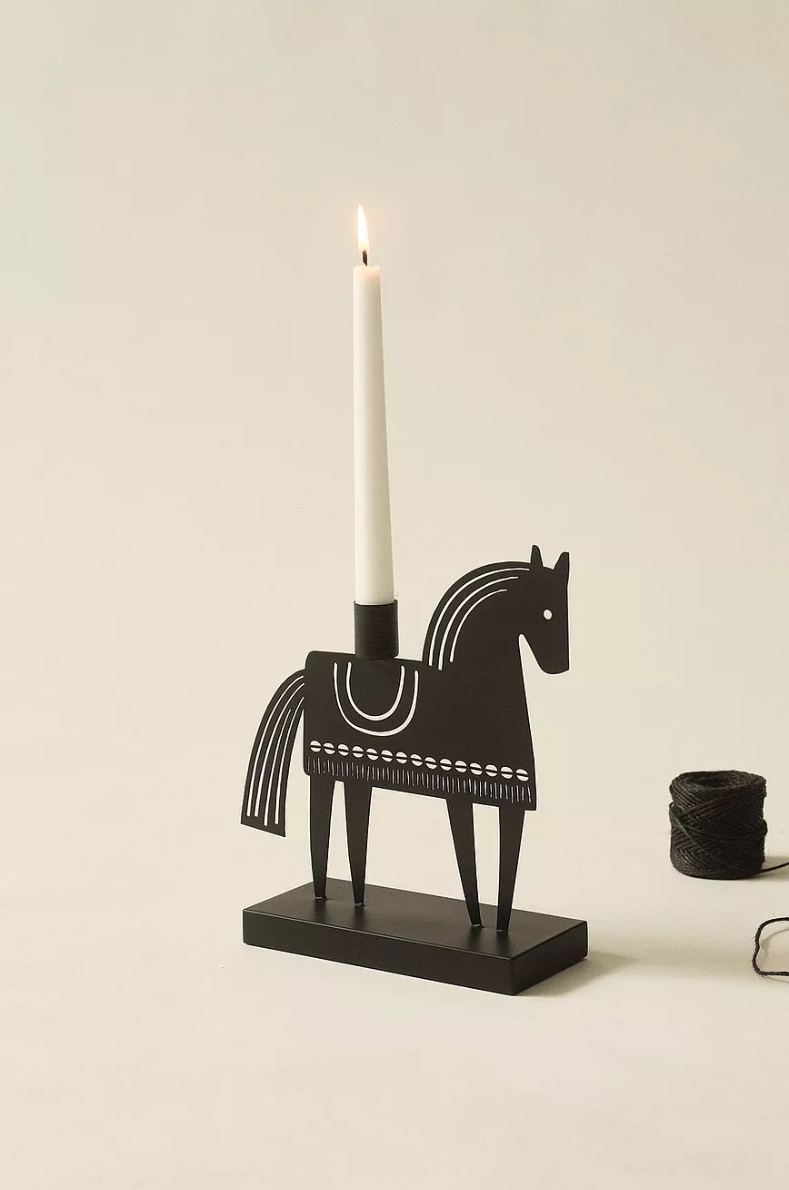 Lysestake av mattsvart metall. Lysestaken er i enkel, rustikk og nedtonet stil med inspirasjon fra folklore. Lys medfølger ikke.