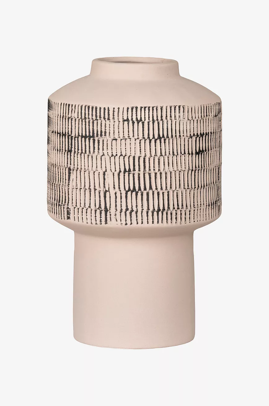 Vase av keramikk med riflet effekt. Mål: Diameter 17,5 x H 28 cm.