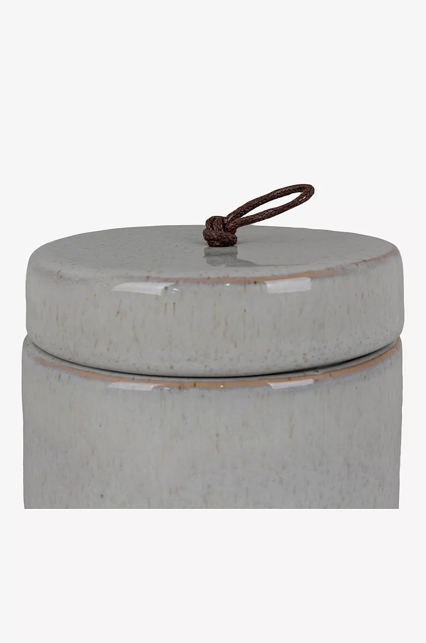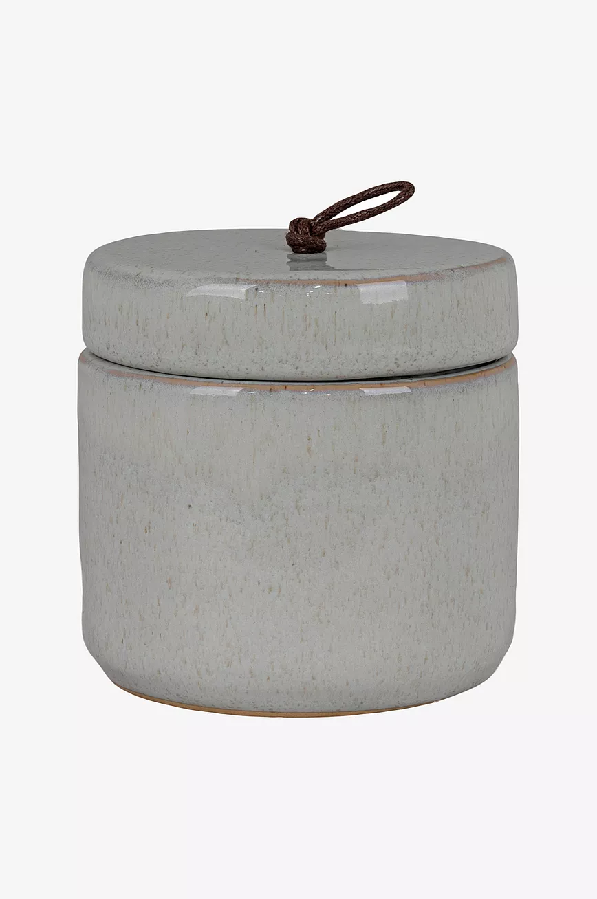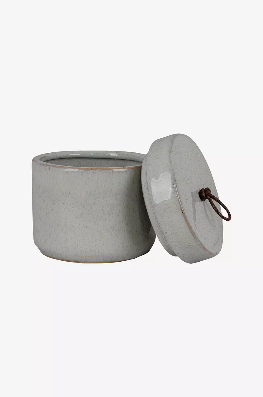 Krukke av keramikk, med lokk, grå, rund, diameter 10,5×10 cm