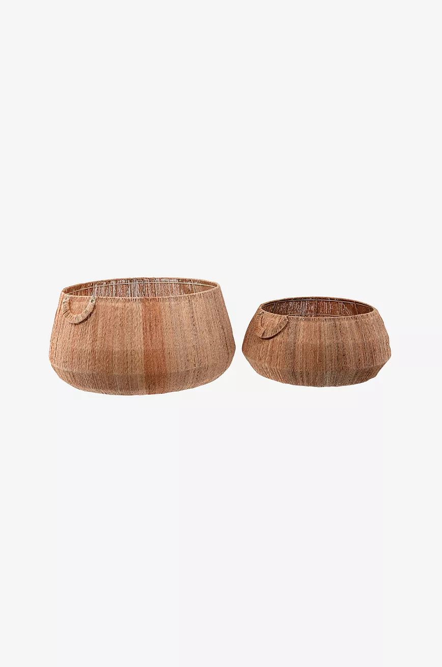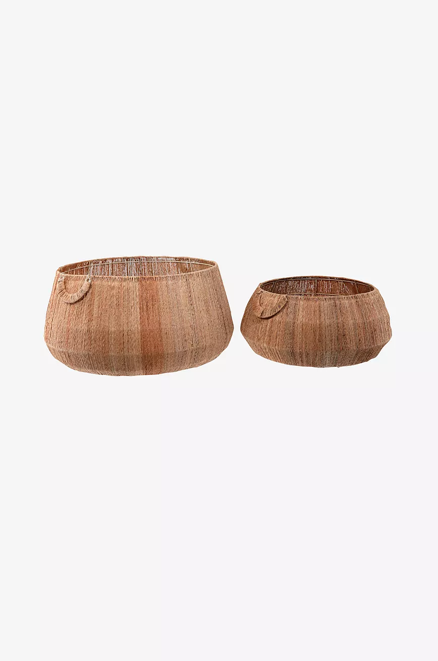 Kurvene Estibalis er fremstilte av håndvevd jute, og viser at selv de enkleste, små tingene kan tilføre stil. Oppbevar håndklær og pledd pent og lettilgjengelige. Mål: Stor kurv Ø 58, høyde 29 cm. Liten kurv Ø 47, høyde 21 cm.