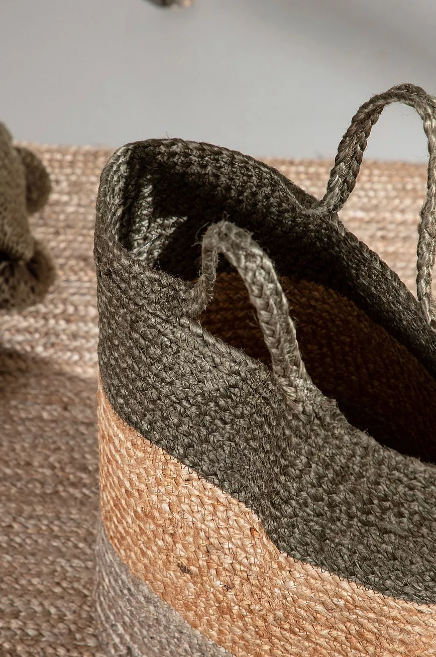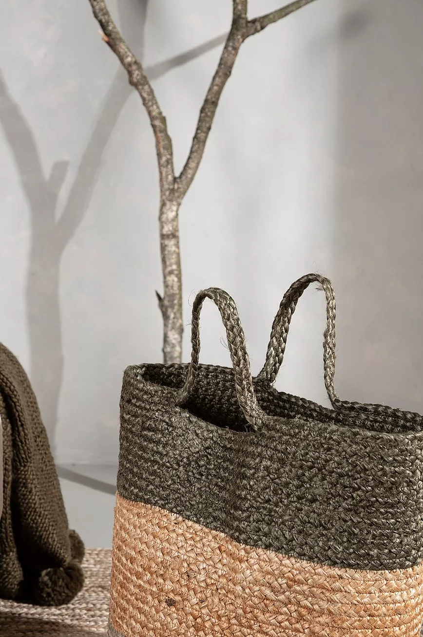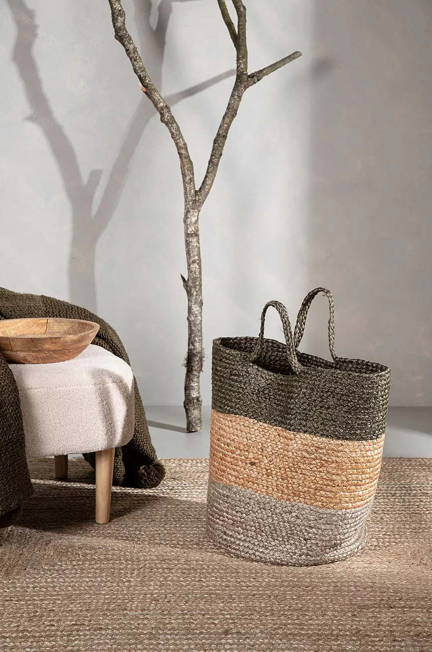 Fin oppbevaringskurv fra serien Kanpur i flettet jute, lekker modell med pene farger! Den fungerer utmerket både til oppbevaring og som pen interiørdetalj – det beste fra to verdener. Kurven er flettet i fargene grå, grønn og nøytral i et bredt, stripete mønster. Den kan også brukes som potte, men da må planten settes i en vanntett potte først. Pynt opp hjemme med en smart oppbevaringsløsning!