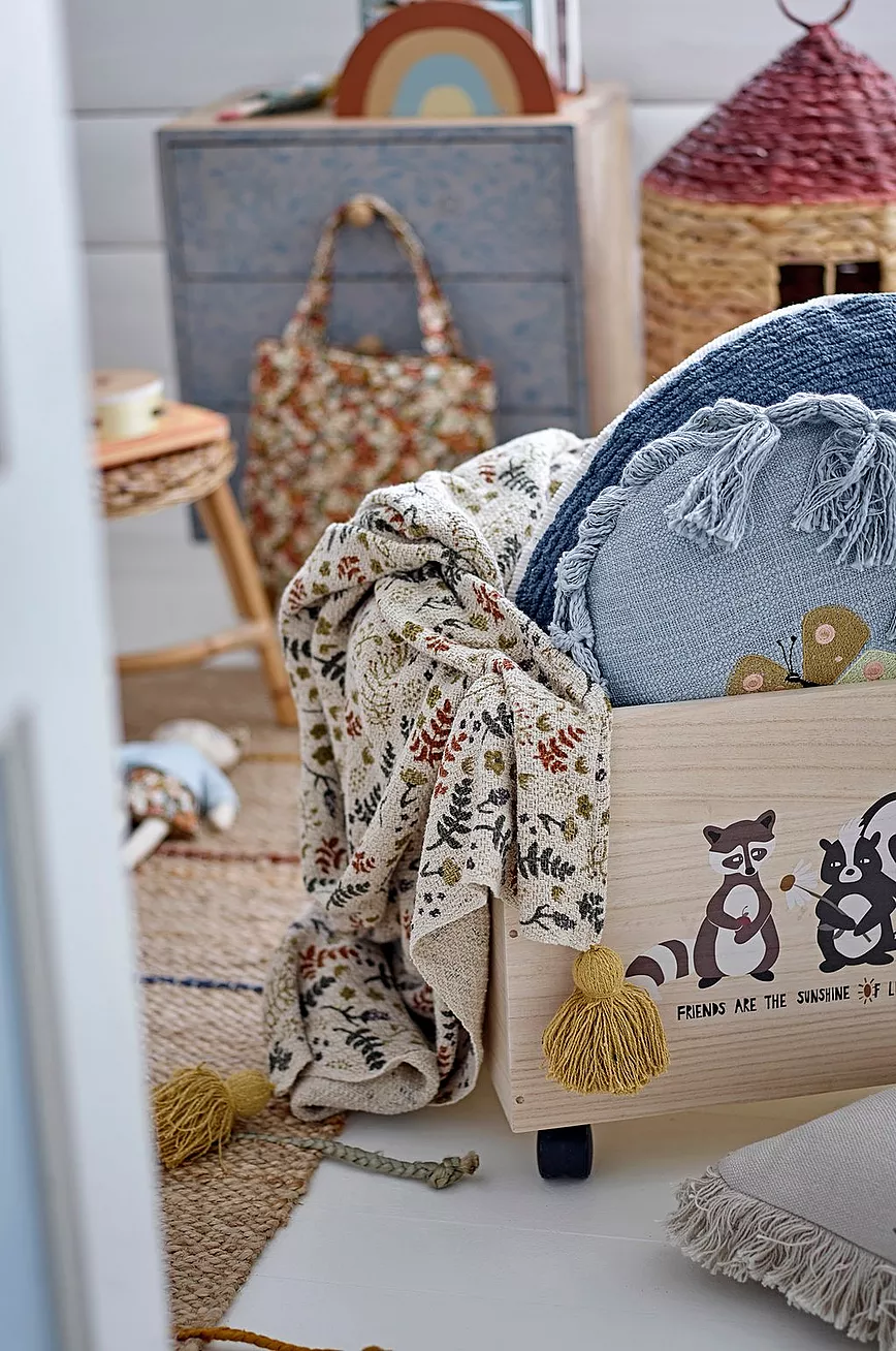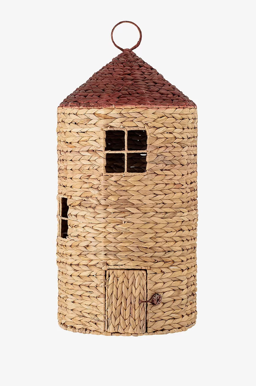 Linas kurv fra Bloomingville Mini er en håndlaget kurv produsert av vannhyasint. Lokket har et håndtak av tau, og kurven kan brukes både til oppbevaring eller som dukkehus.