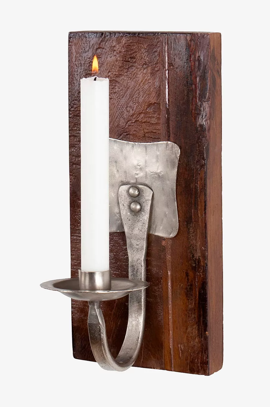 Lampett / lysestake i gjenvunnet tre med kronelysholder i jern.