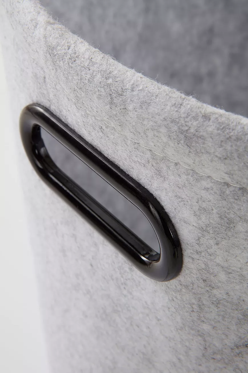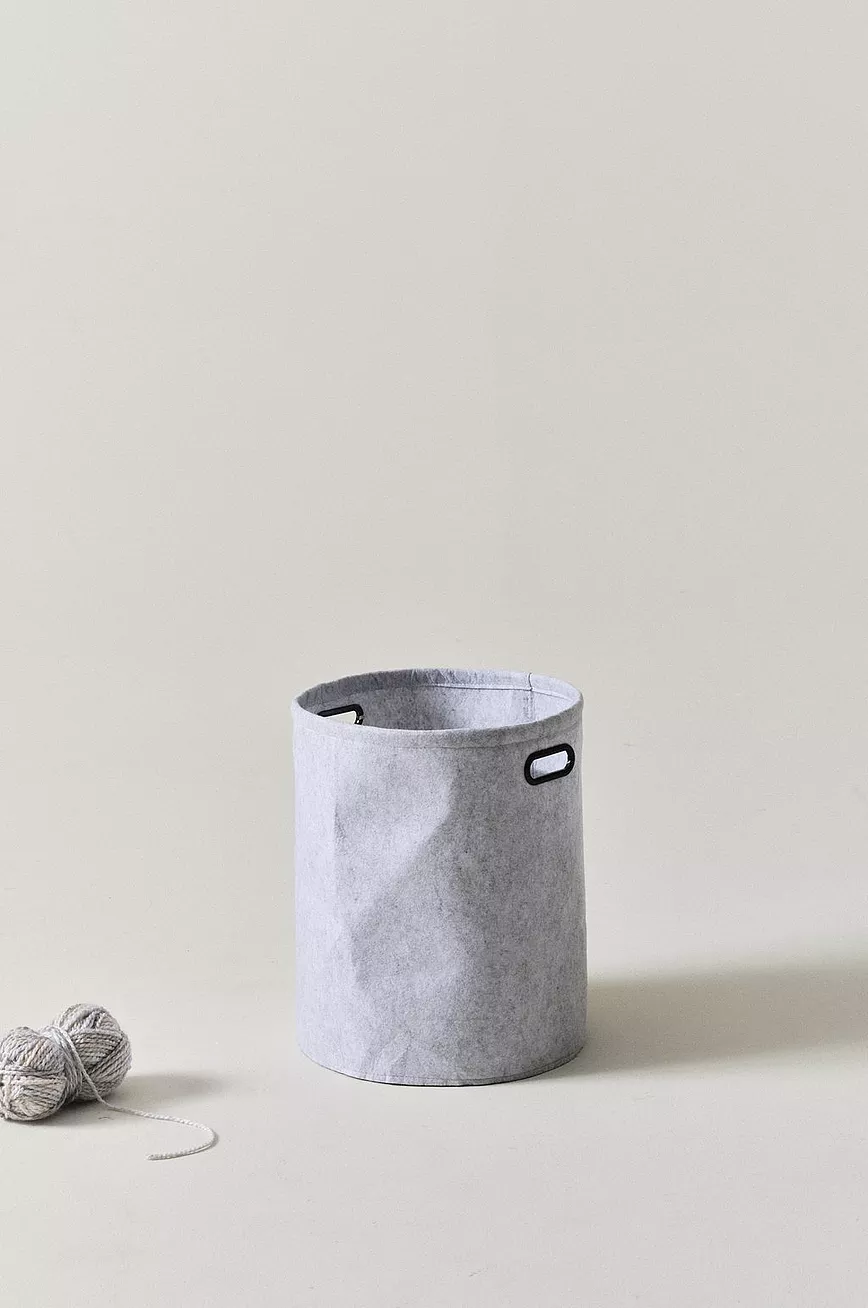 Oppbevaringskurv av tovet polyester. To ovale åpninger utgjør håndtak som gjør det enkelt å bære kurven med seg. Åpningene har svart kant. Man kan aldri få for mange kurver – de gir fleksibel og praktisk oppbevaring.