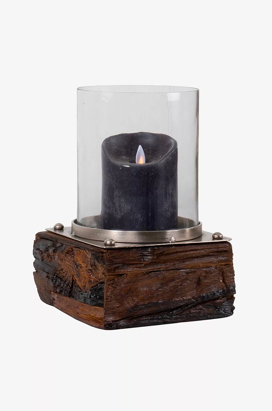 Lyslykt i tre med lysplate i jern og kuppel av glass.