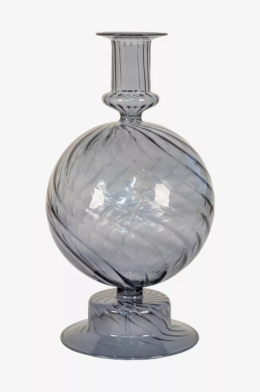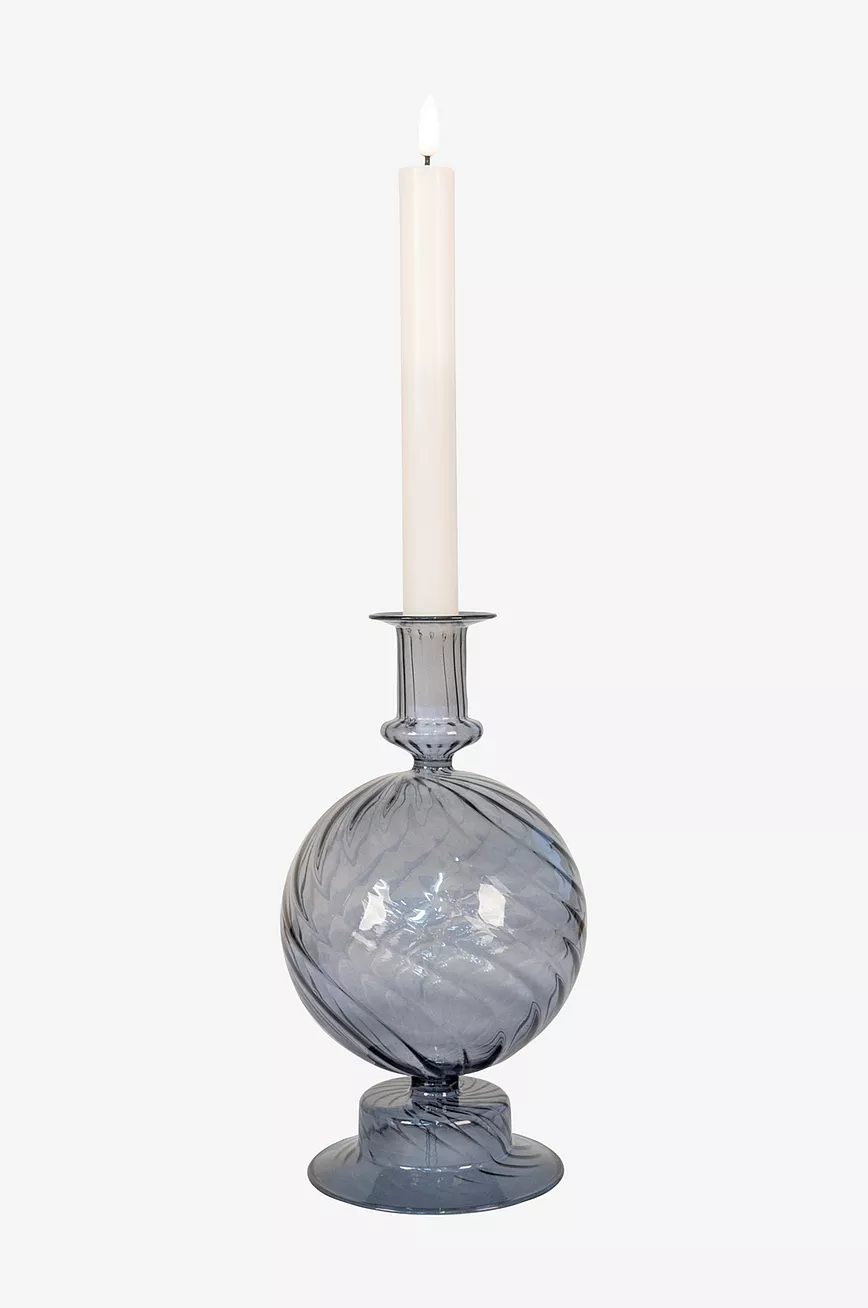 Lysestake av munnblåst borosilikatglass. Mål: Diameter 12 x H 22 cm.