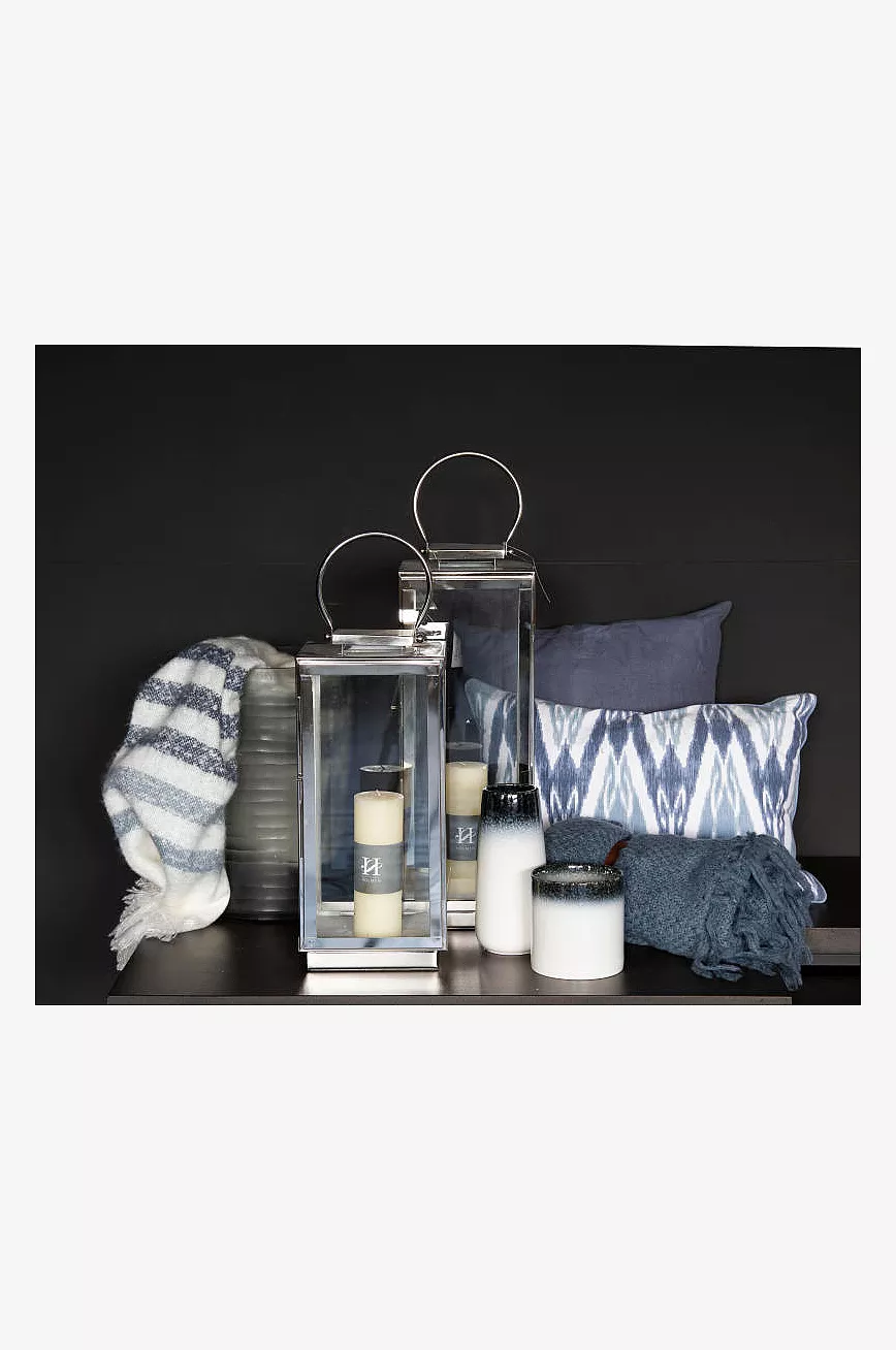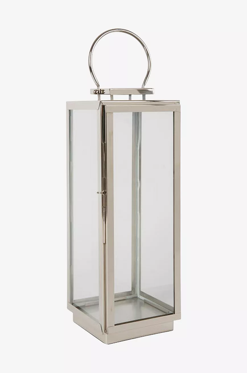 Vakker lyslykt i sølv med glass.