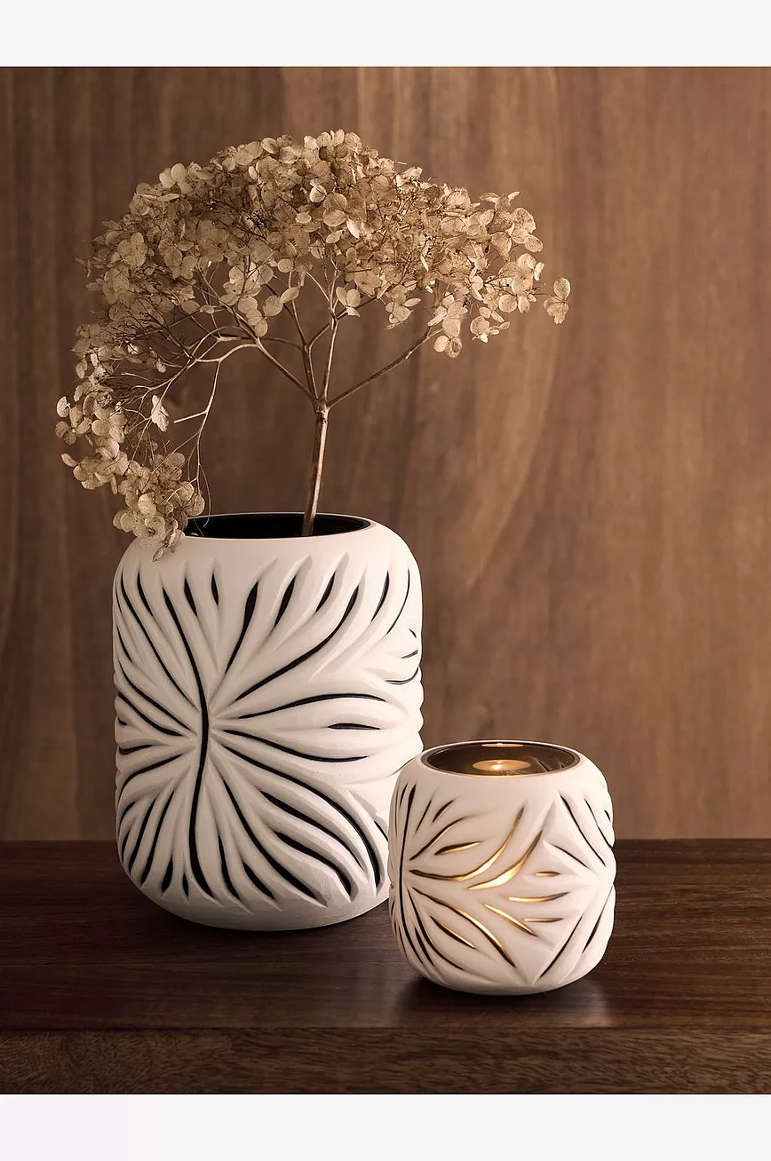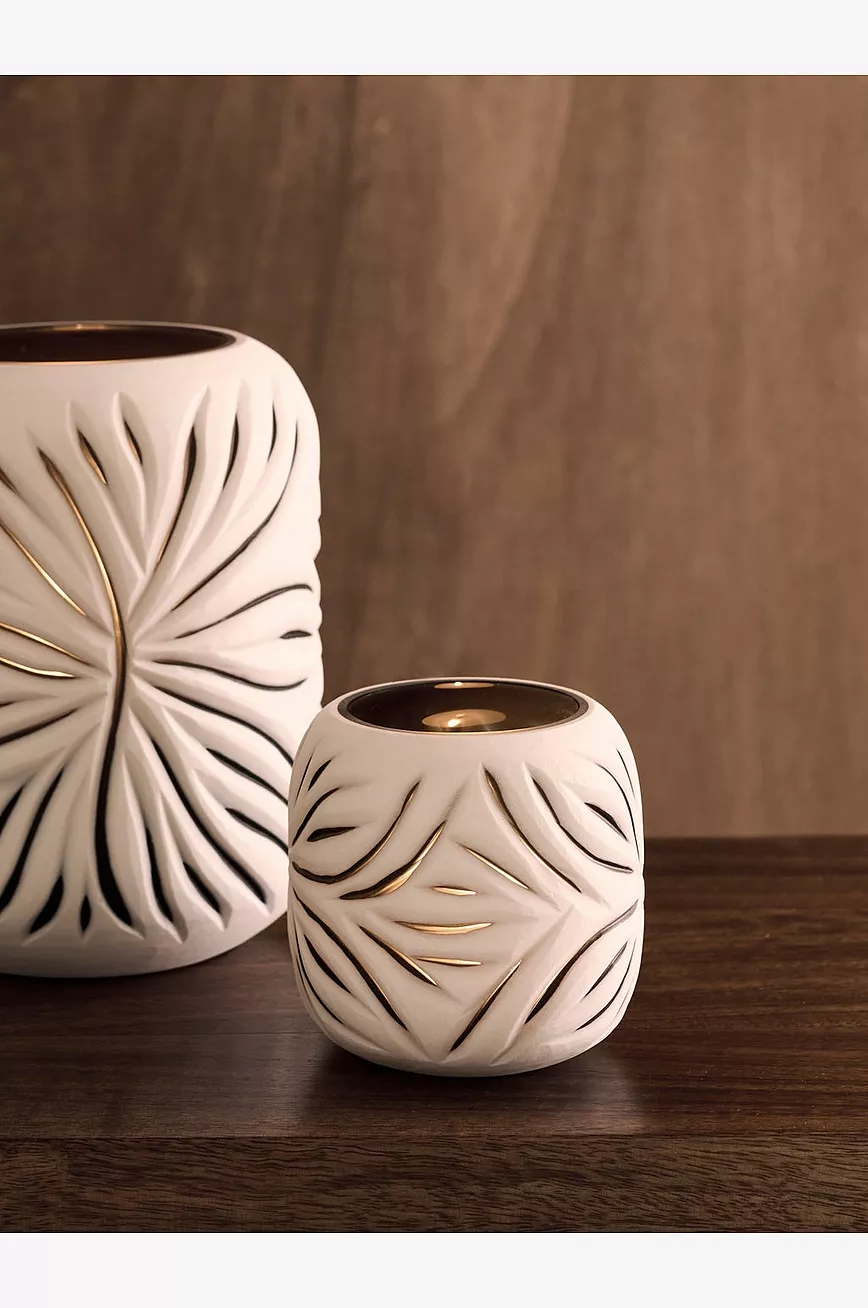 Håndlaget lyslykt i munnblåst glass. Håndlaget teksturmønster med matt overflate. For telys.