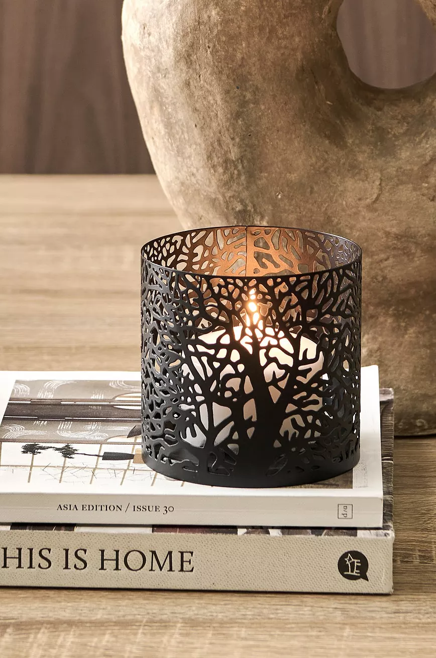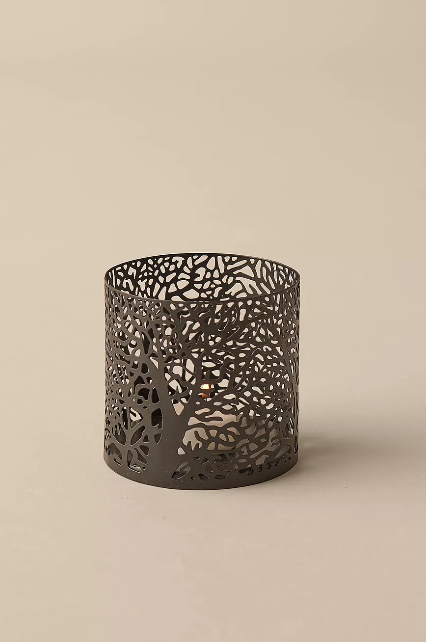 Lyslykt av metall med gjennombrutt mønster.