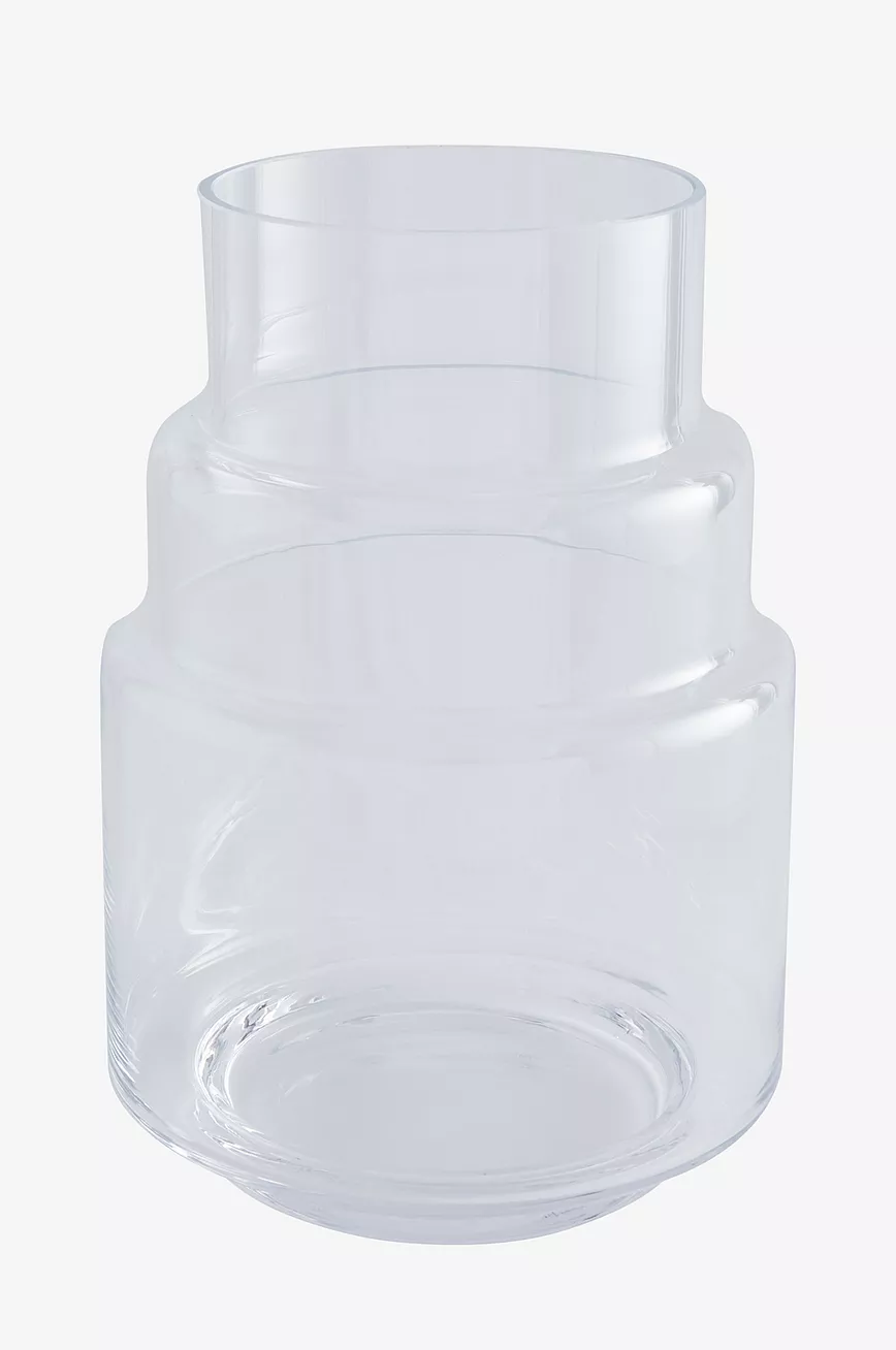 Herlig munnblåst vase i klart glass som passer på både sidebordet og spisebordet. Høyde 23 cm og diameter 16 cm. Hver vase er unik, og det kan være små forskjeller i fasongen. Produsert i Europa. Designet av Monika Mulder. Viktig å huske – ikke plasser vasen i direkte sollys da runde gjennomsiktige materialer, som glass og ufarget plast i direkte sol bryter solens stråler og blir svært varme.