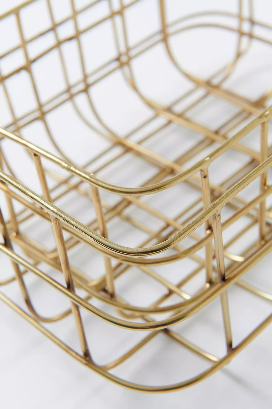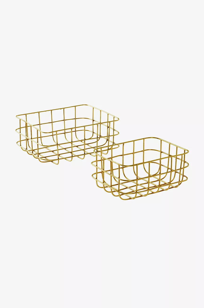 2-pk kurver i metall med antikkgullfinish. Trådkurvene har stort bruksområde og passer bra i baderommet, kjøkkenet, hallen eller der du behøver praktisk oppbevaring. Enkel og stilren modell i fin kvalitet.