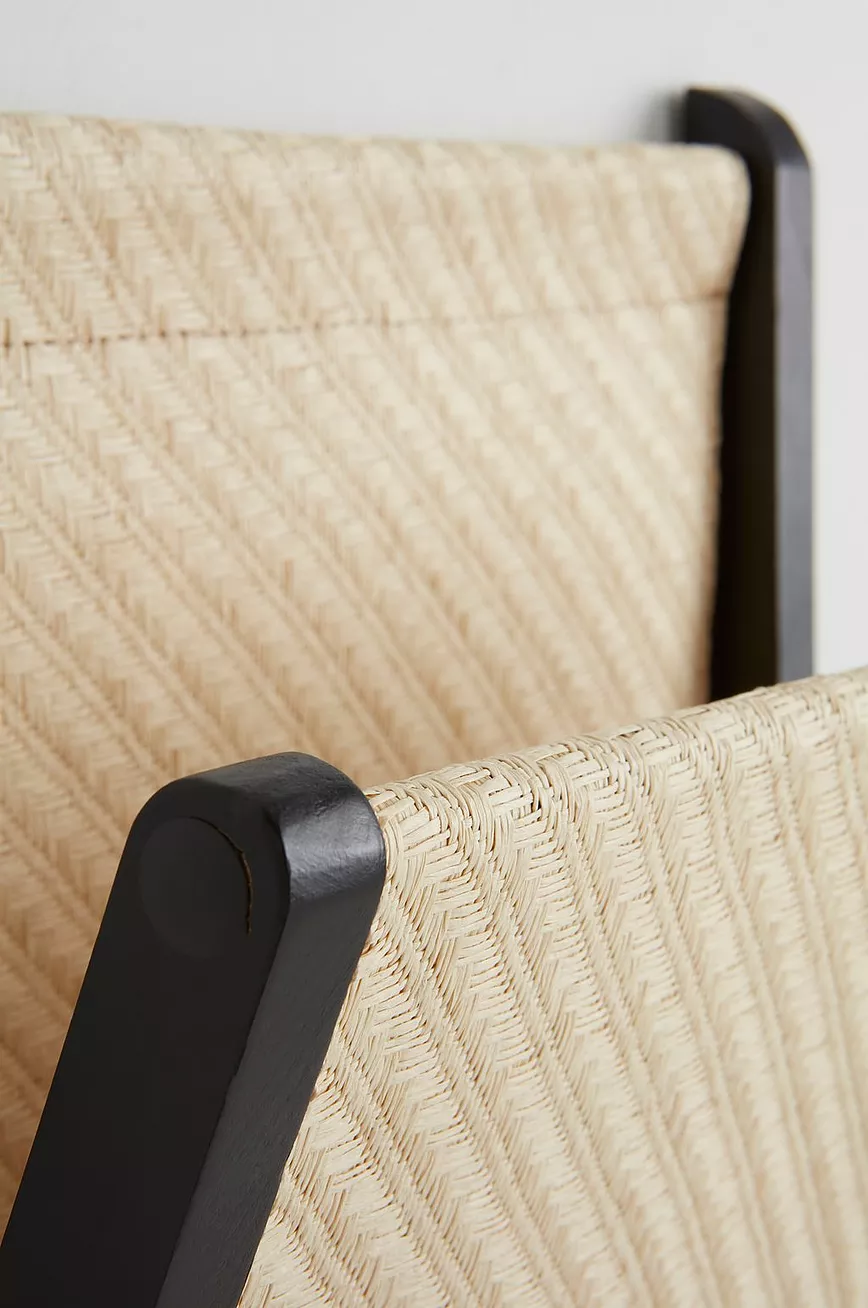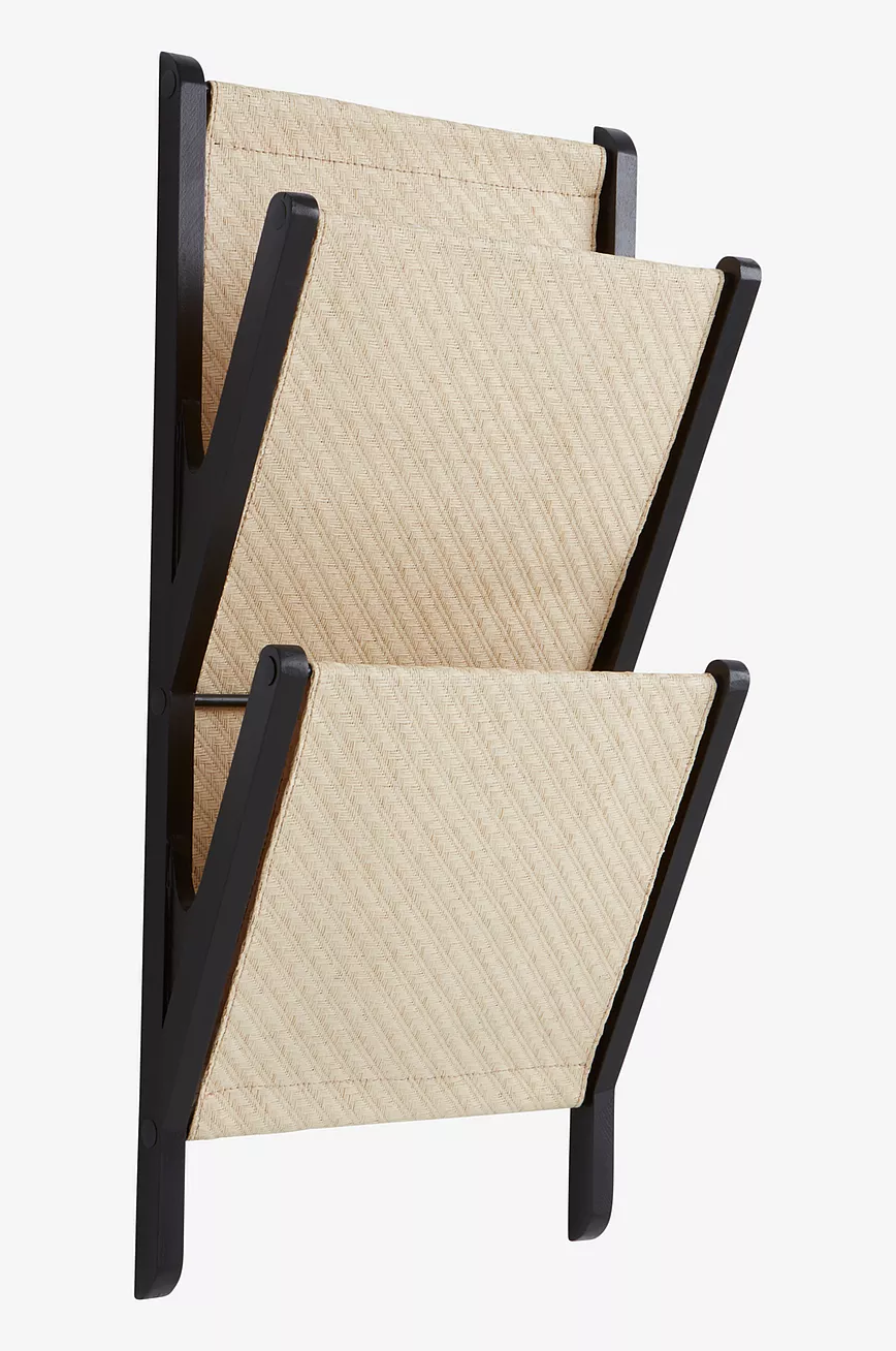 MORGAN er en avishylle av bambus og rotting, som du henger på veggen. Rammen i bambus er mattsvart, rommene og ryggen er i naturlig, ubehandlet rotting.