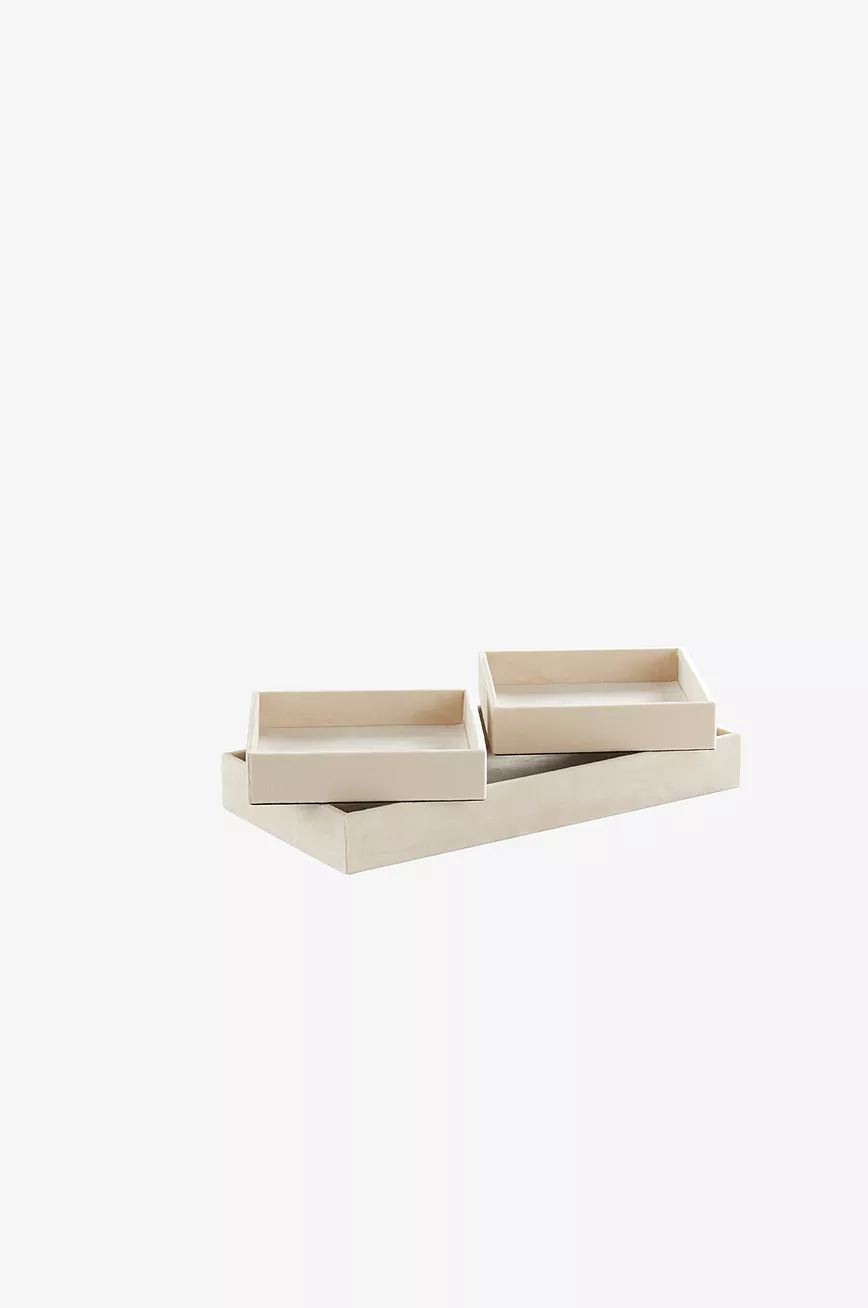 3-pk brett av MDF som kommer i to ulike størrelser. NICO har en fløyelskledd utside som gir en myk og elegant følelse.