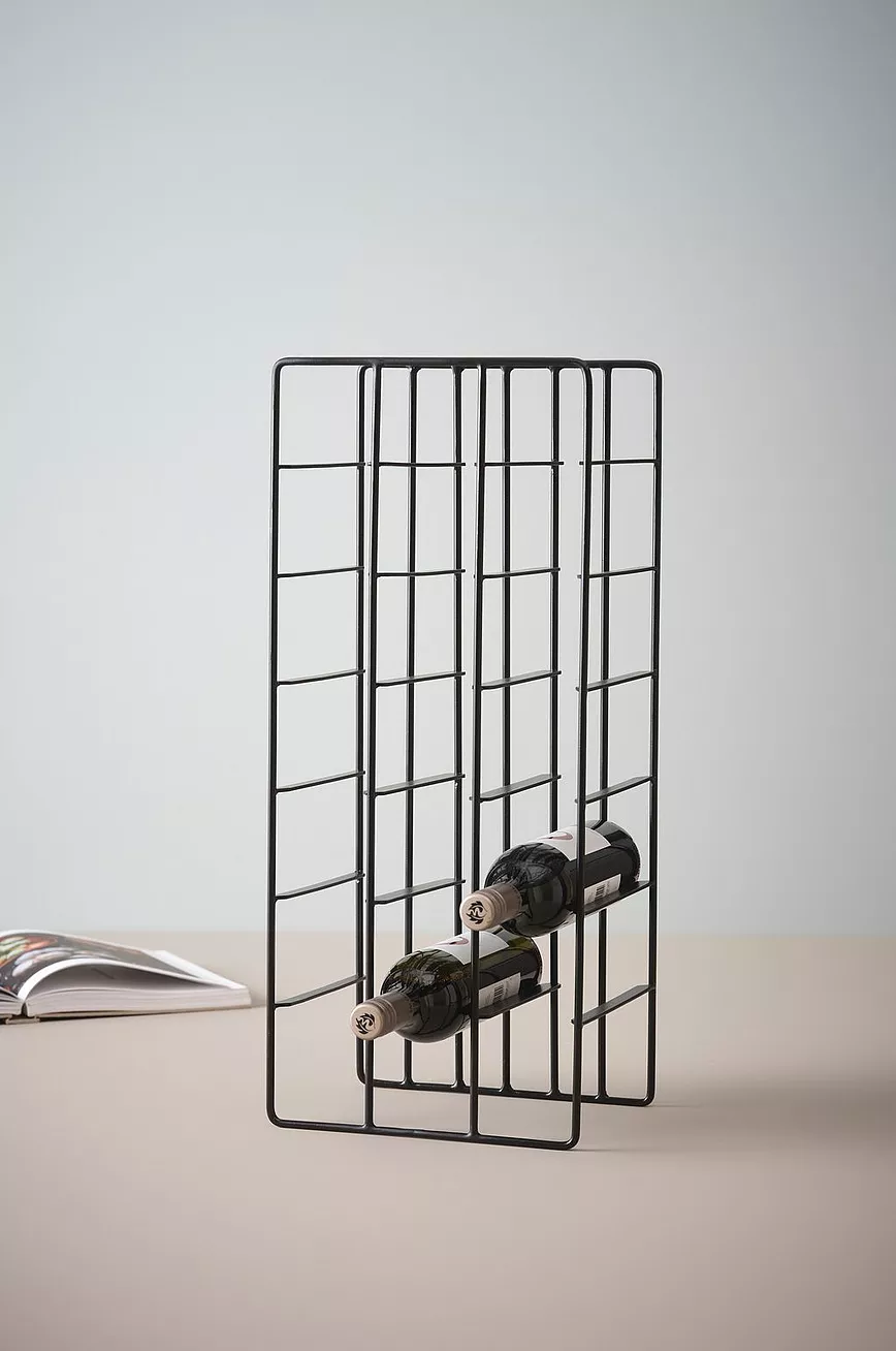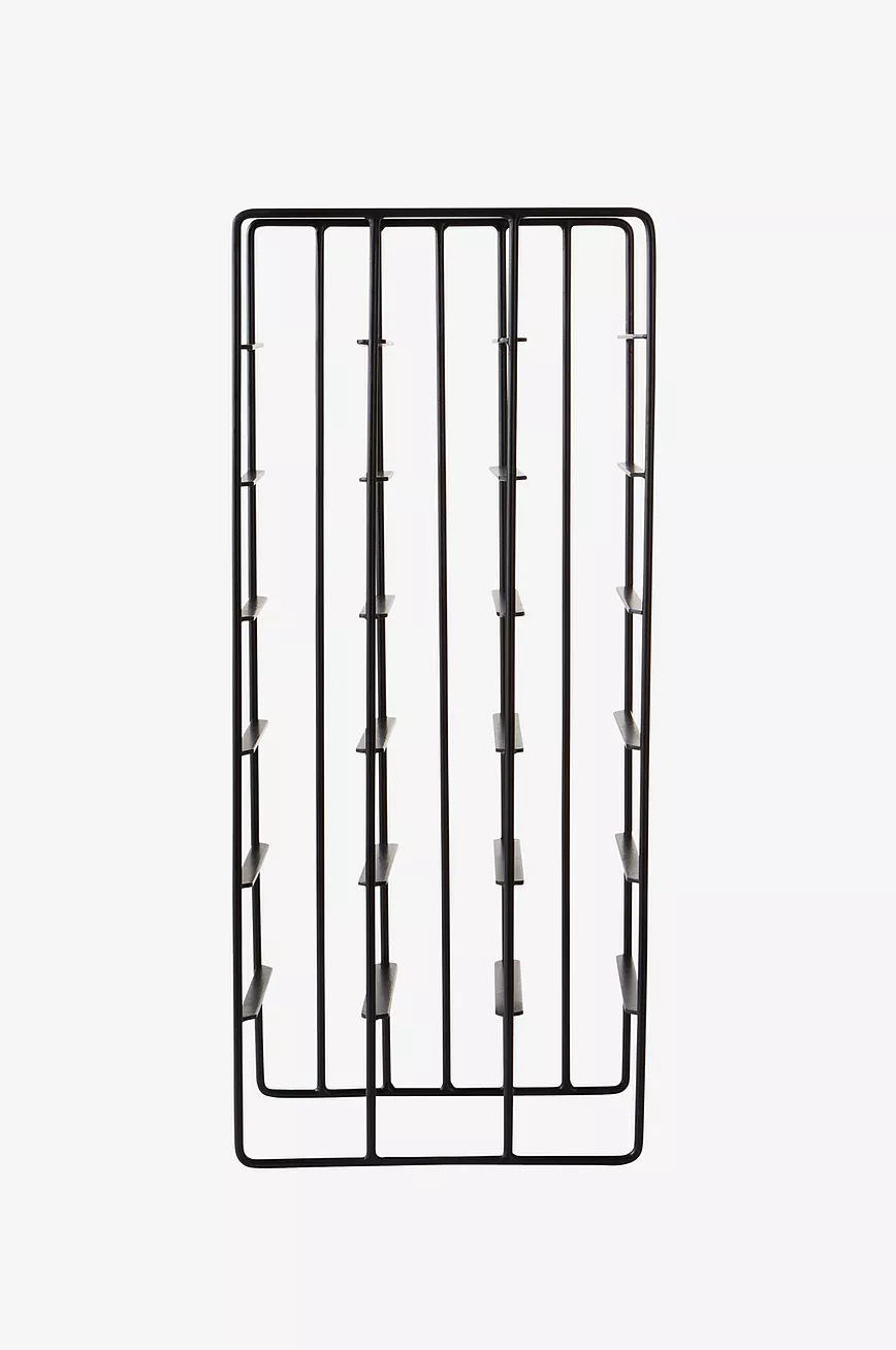 Vinstativ av jern med pulverlakkert overflate. Vinstativet har rett og rasjonell form, det rommer 18 flasker, og er pent også når noen flasker er borte. Vinstativet plasseres der du ønsker uten å settes fast, og er enkelt å flytte.