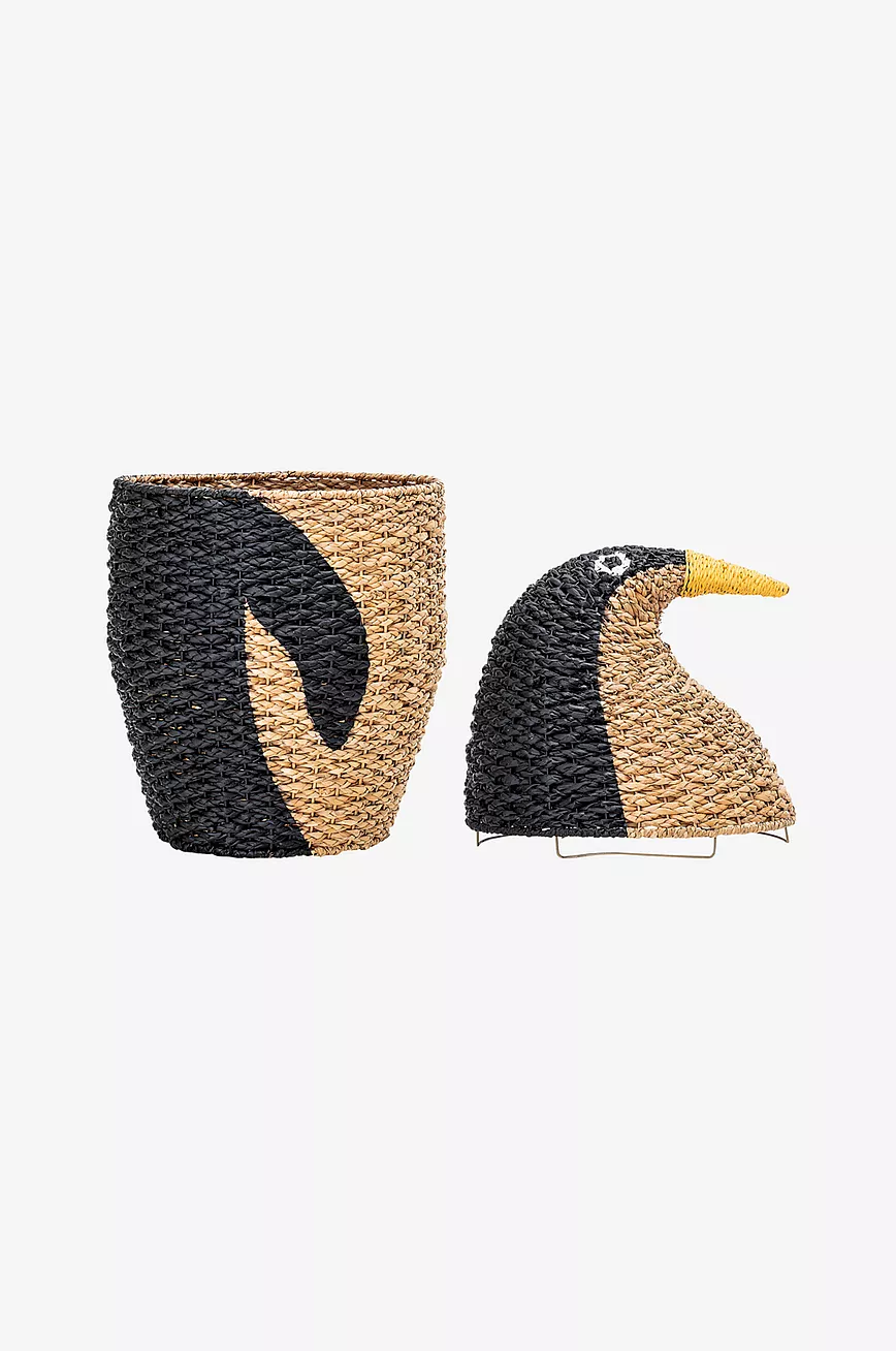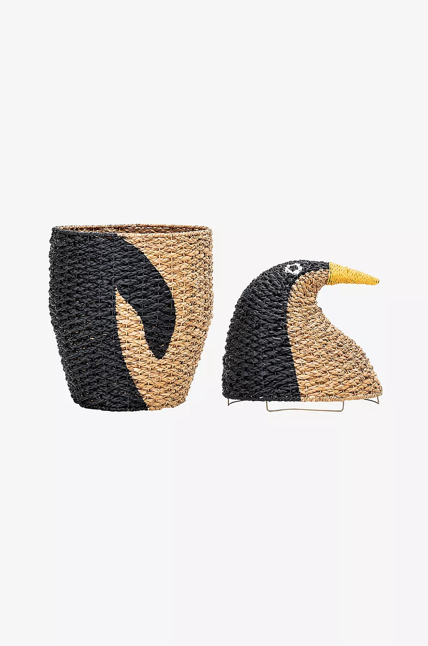 Bloomingville Mini. Oppbevaringskurv av naturgress i form av en pingvin med lokk. Mål: Diameter 37, høyde 69 cm.