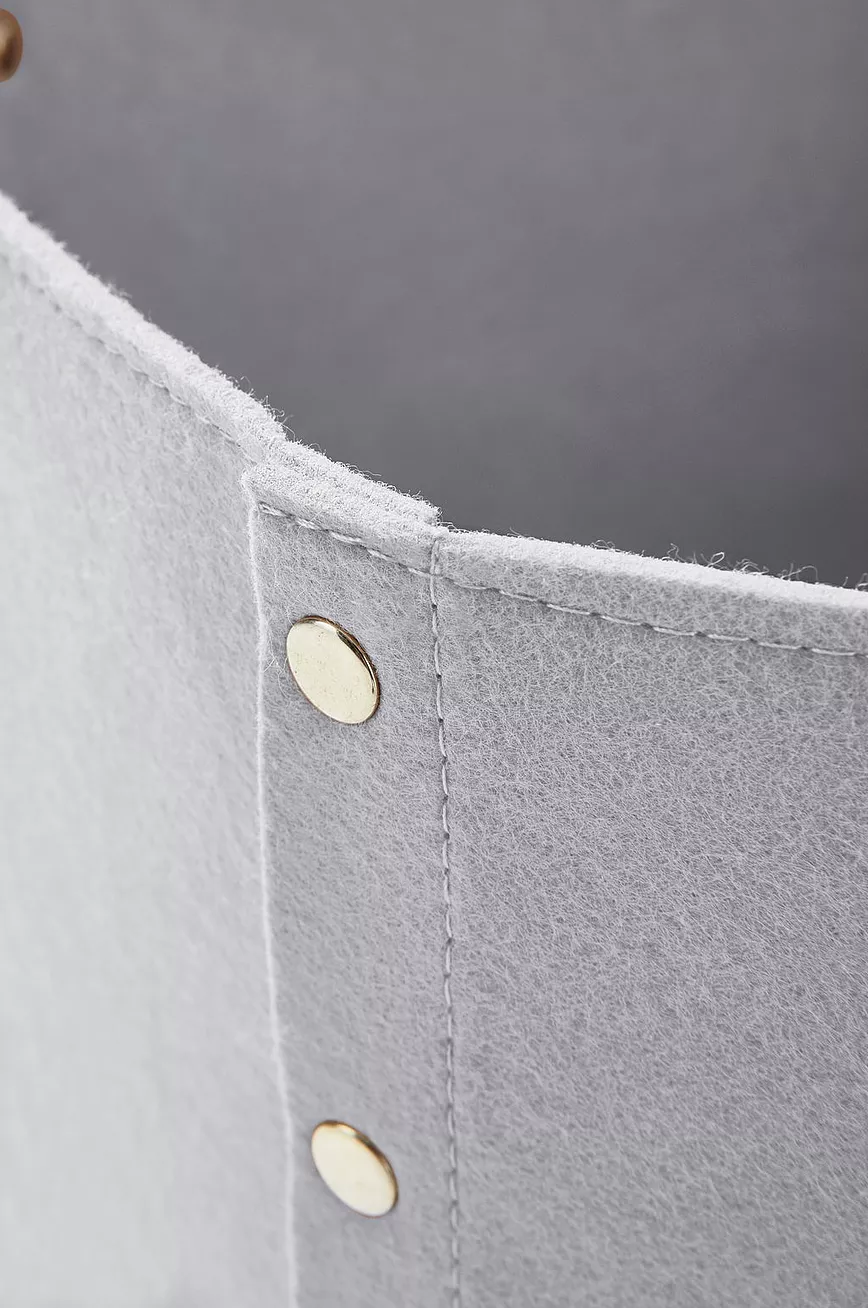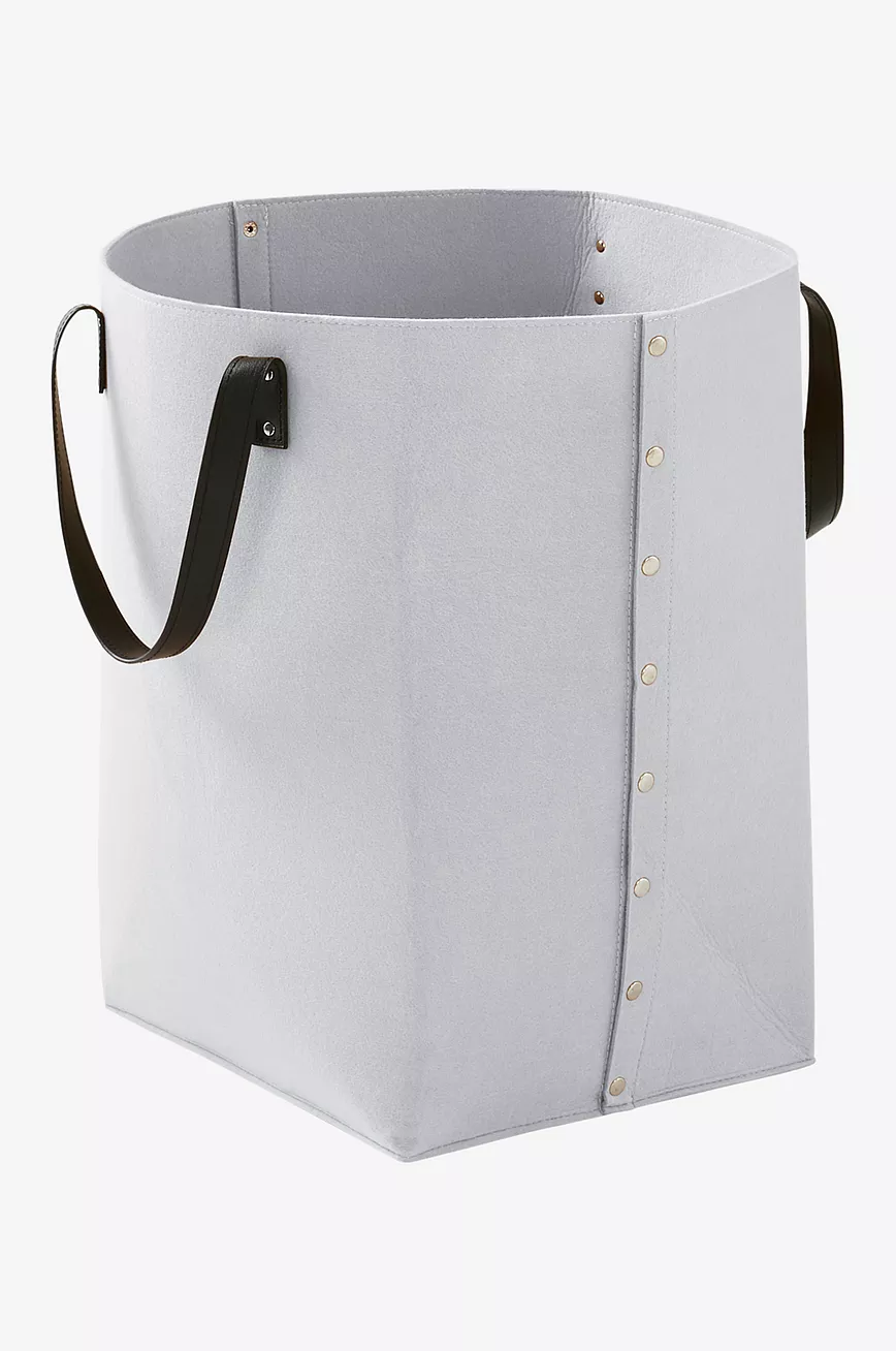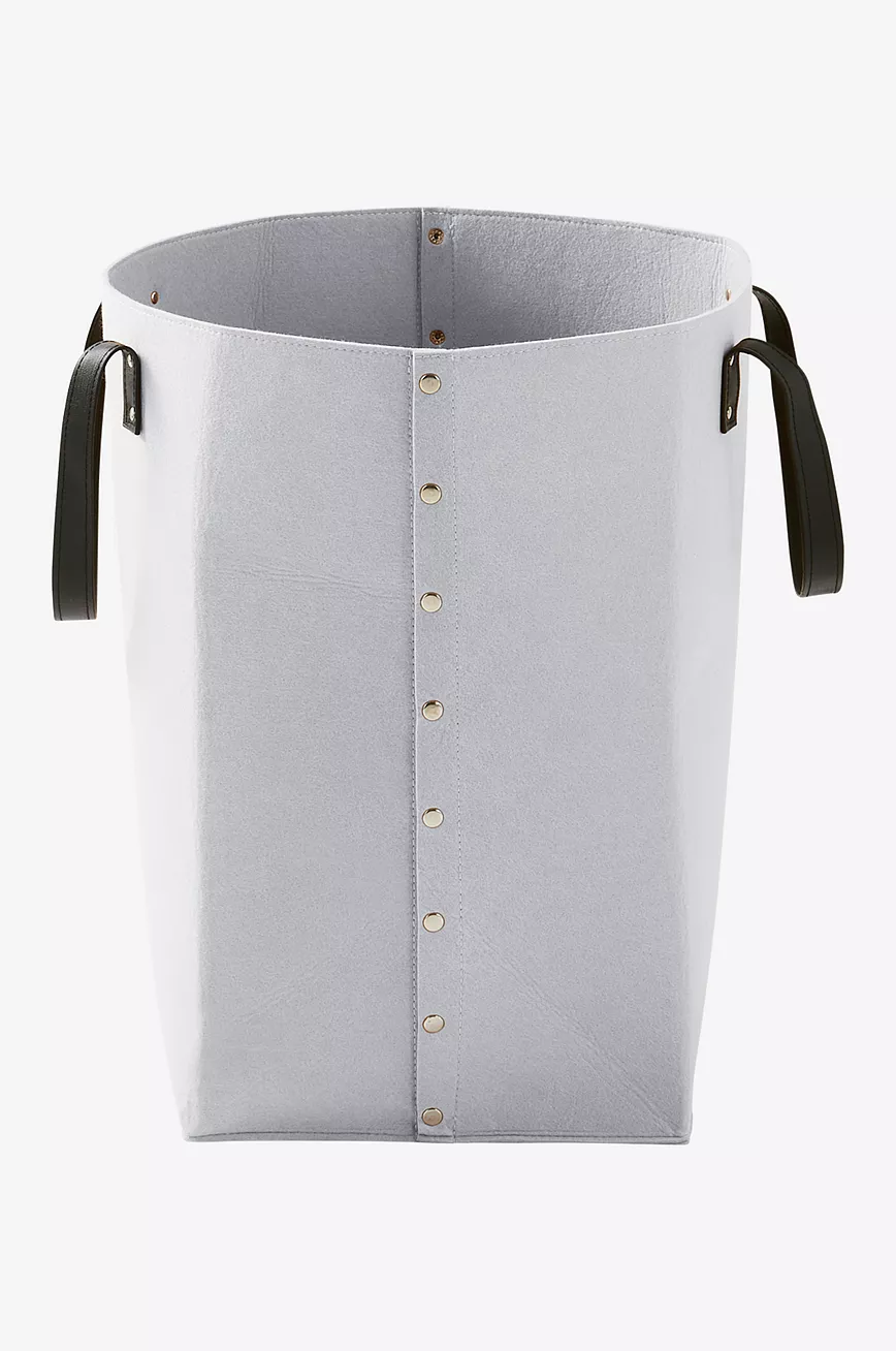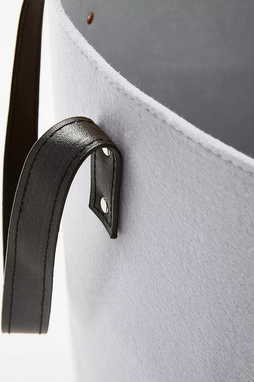 Oppbevaringskurv av tovet polyester med svarte håndtak. De solide håndtakene gjør det enkelt å bære kurven med seg. PALAUS gir fleksibel og praktisk oppbevaring som passer både på barnerommet, i gangen og på vaskerommet.