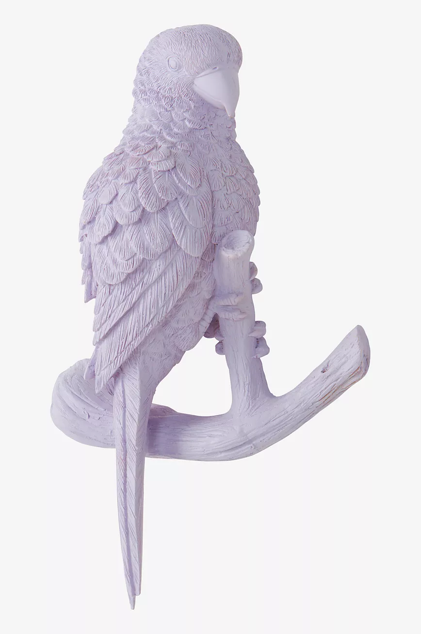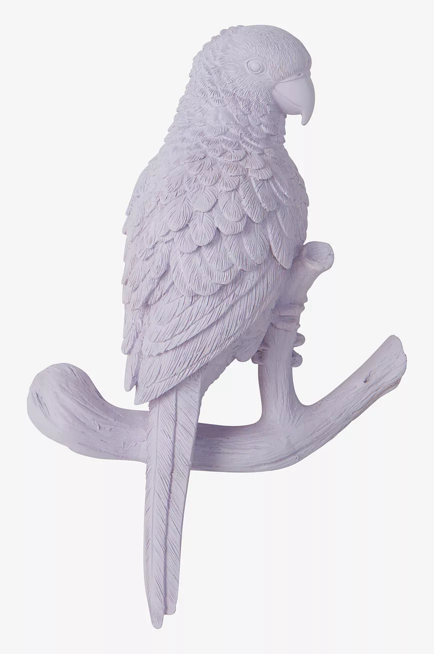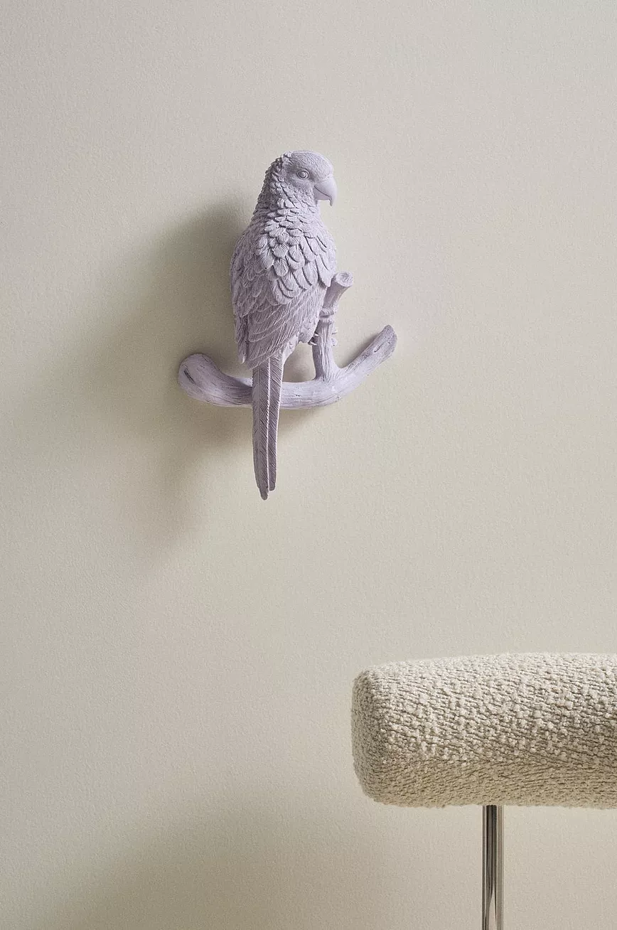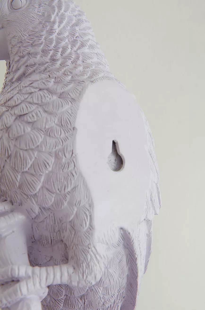 Veggdekor PARROT av polyresin. Papegøyen er virkelighetstro i formen, og har en klar matt farge. Relieffmønsteret gjør at skygger og lys gir papegøyen karakter. Hull på baksiden for oppheng.