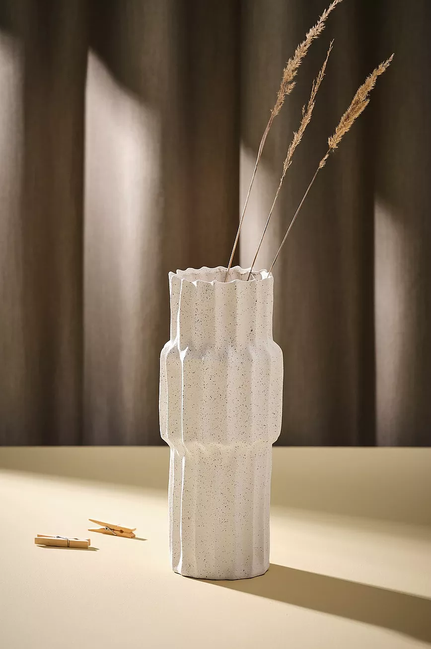 Håndmalt vase av keramikk. PILAR er en herlig vase med vakker, glanset glasur med struktur som gir en nostalgisk retrofølelse til hjemmet ditt. Innsiden er også glasert. Et visst avvik kan forekomme ettersom vasen er håndlaget. Keramikk kan slippe gjennom fukt.