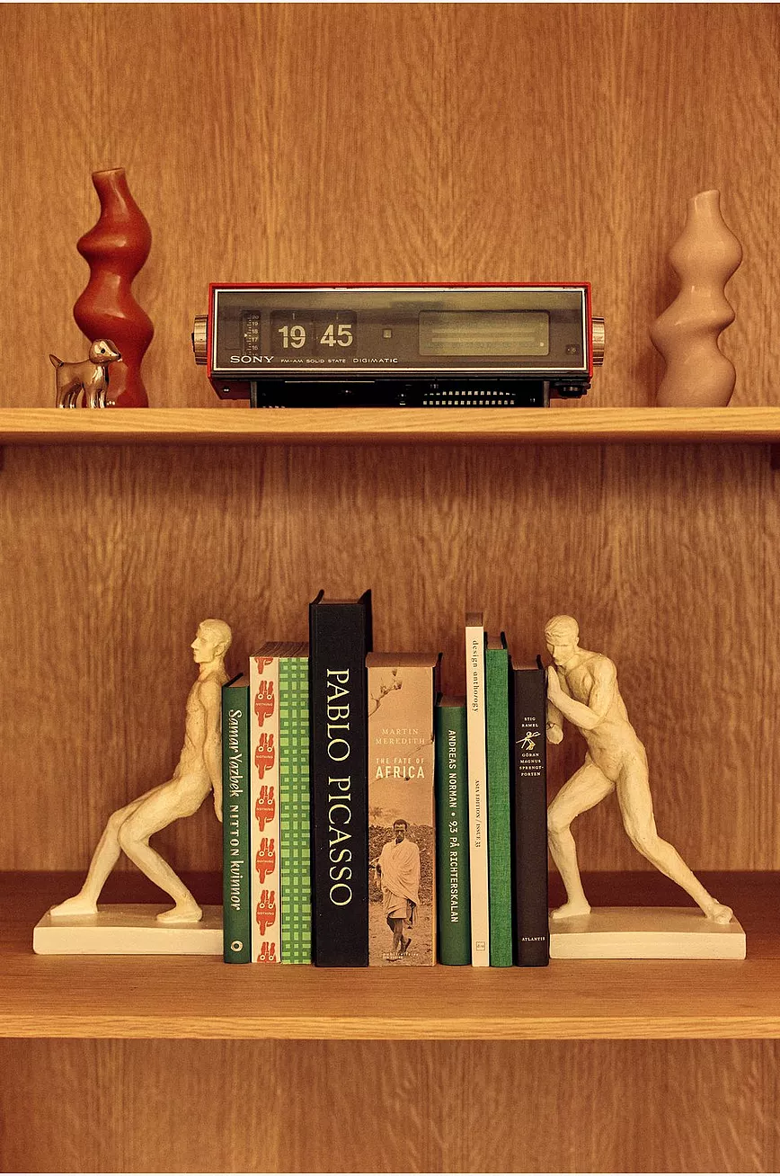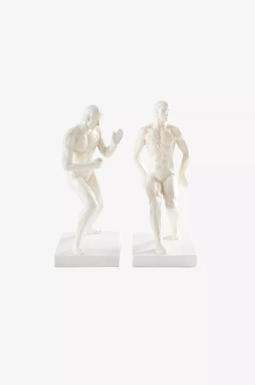 2-pk bokstøtte med to sterke menn i polyresin.